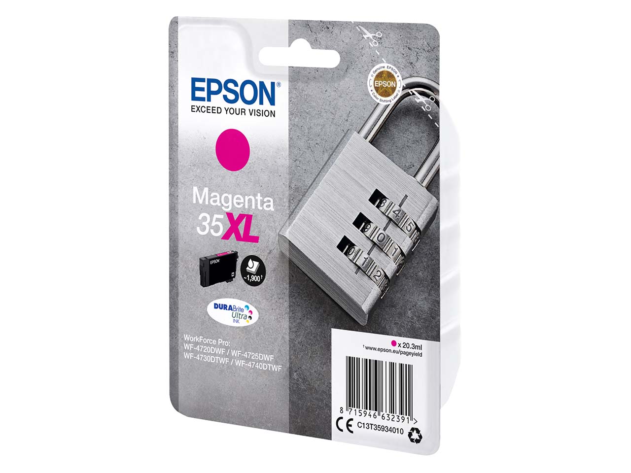 Die originale Epson Tintenpatrone T3593/35XL mit der Herstellernummer C13T35934010 ist sehr ergiebig und eignet sich für alle täglichen Druckaufgaben. Sie ist passend für die Modelle WorkForce Pro WF-4700, 4725, 4730, 4735 und 4740. Bei 5 % Deckung lassen sich bis zu 1.900 Seiten erzielen. Farbe magenta.
