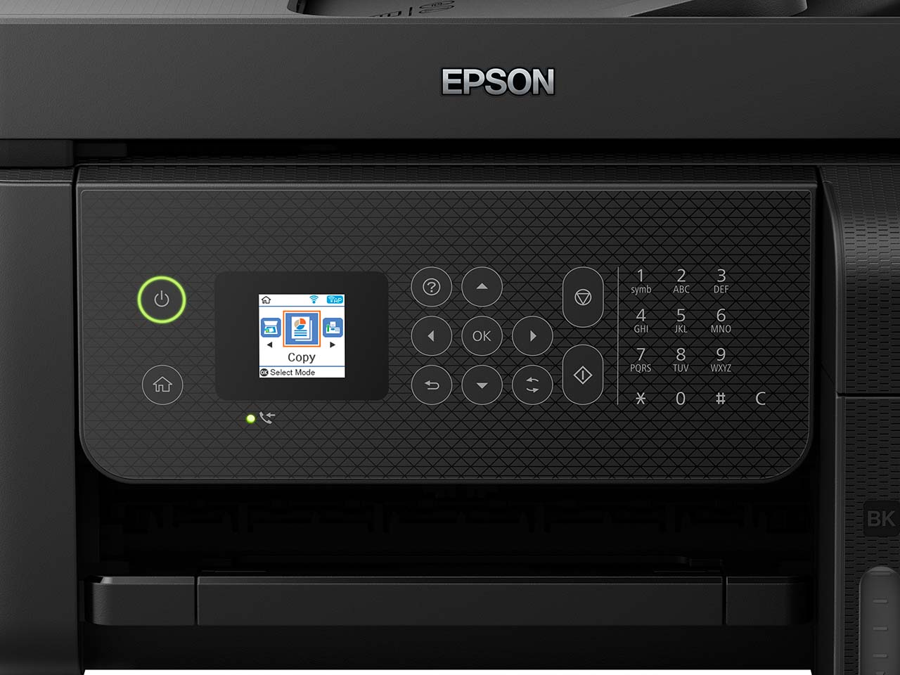 In diesem Tintenstrahl-Multifunktionsdrucker von Epson vereinen sich Funktionalität und Nachhaltigkeit! Es lässt sich damit faxen, scannen, kopieren und drucken, wobei Druckgeschwindigkeiten von bis zu 10 Seiten/Min. erreicht werden. Durch das innovative EcoTank-System lässt sich beim Drucken Geld einsparen und gleichzeitig die Umwelt schonen. Die integrierten, großvolumigen Tintentanks machen Tintenpatronen überflüssig. Der im Lieferumfang enthaltene Vorrat druckt bis zu 4.500 Seiten in S/W und 7.500 in Farbe. Das entspricht rund 72 Tintenpatronen! Weitere Highlights sind die 3,7 cm Farb-LCD-Anzeige, der Dokumenteneinzug für 30 Blatt, die Papierkassette für 100 Blatt sowie WLAN und Wi-Fi Direct für das Drucken von Smartphone oder Tablet. Das Beste: Das Gerät arbeitet mit der Heat-Free Technology, die im Vergleich zu Laserdruckern weniger wartungsintensiv ist und den Stromverbrauch reduziert! Um die Tinte auf das Papier zu bringen wird nämlich keine Wärme benötigt. Die Tinte wird aus der Düse ausgestoßen, indem im Inneren Spannung auf ein Piezo-Element ausgeübt wird. B 37,5 x T 34,7 x H 23,7 cm.