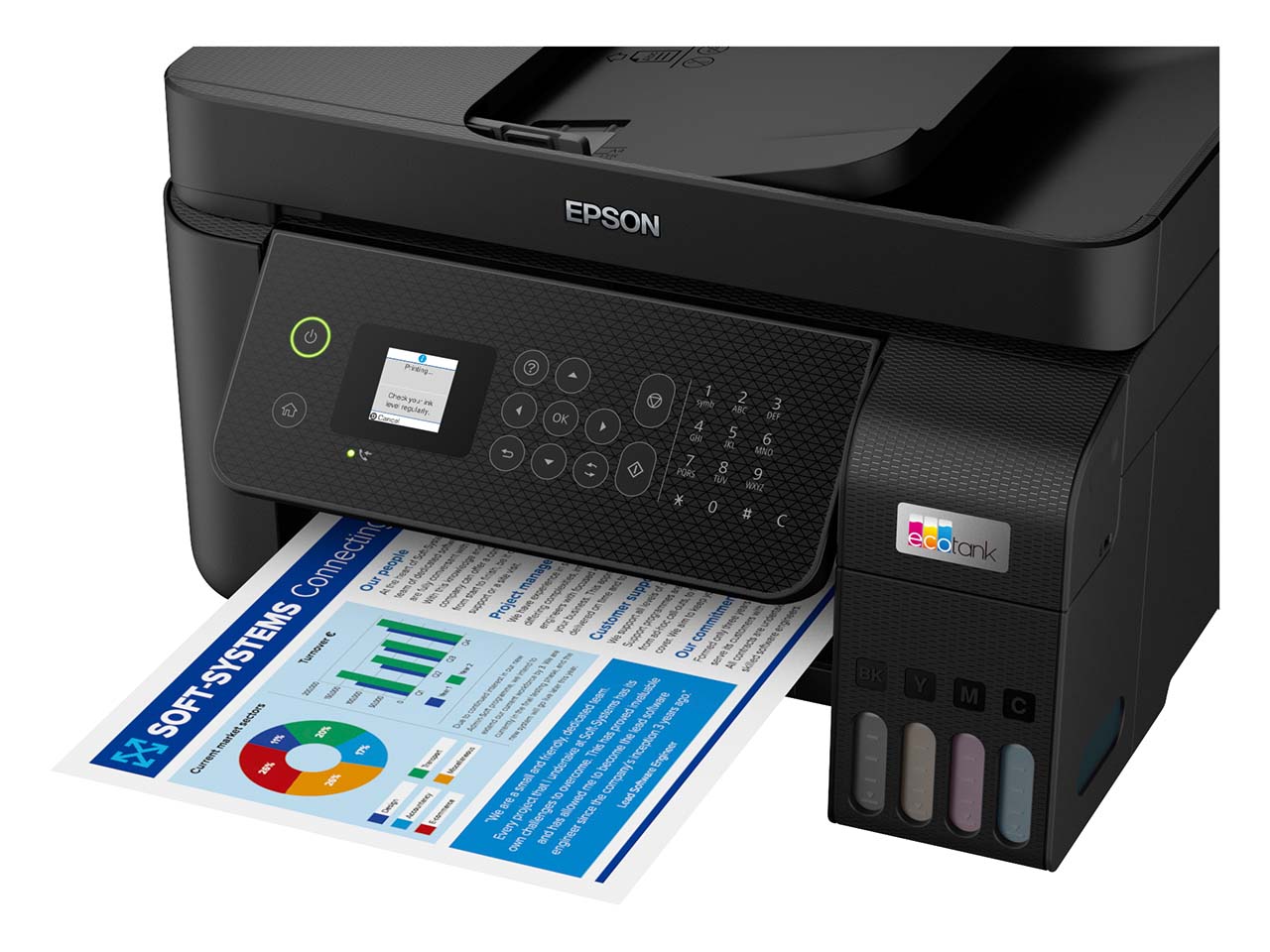 Der EcoTank druckt mit dem Tintentanksystem effektiv und kostengünstig. Dabei wird nicht nur Geld, sondern auch Plastikmüll eingespart: Durch das Nachfüllen fallen keine Verpackung, Patronengehäuse sowie elektronische Bauteile in der Patrone an, was die Umwelt entlastet. Die Tintenkosten lassen sich mit dem System um bis zu 90 % reduzieren. Im Vergleich zu Laserdruckern verbraucht das Gerät auch bis zu 83 % weniger Strom, denn es benötigt dank der Heat-Free Technology keine Wärme, um Tinte auf das Papier zu bringen. Aufwärmzeiten entfallen so ebenfalls und es kann sofort losgedruckt werden. Wartungsarm ist der Drucker ebenfalls: Im Vergleich zu Laserdruckern fallen 95 % weniger Austauschkomponenten an.