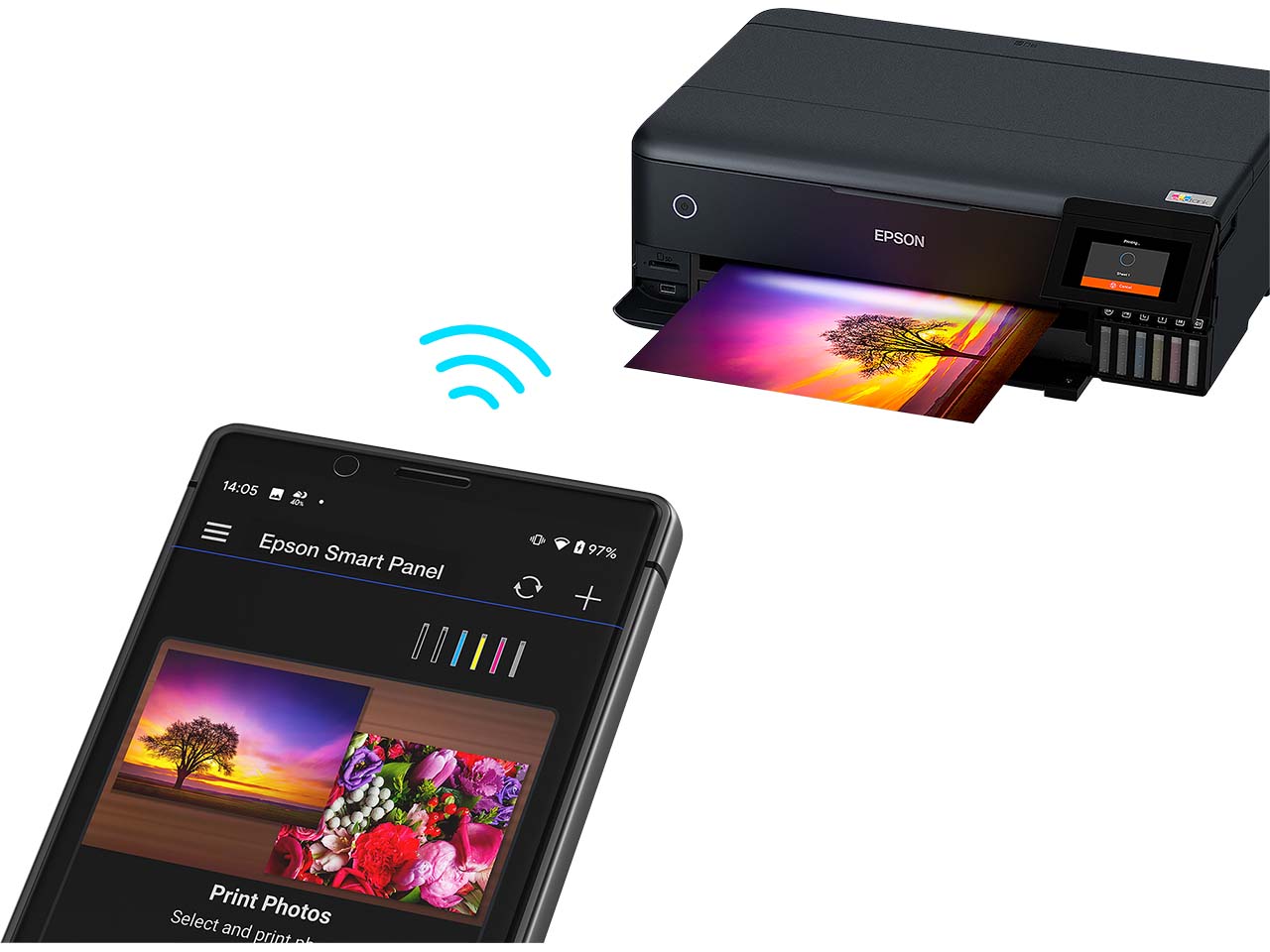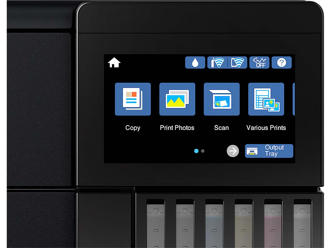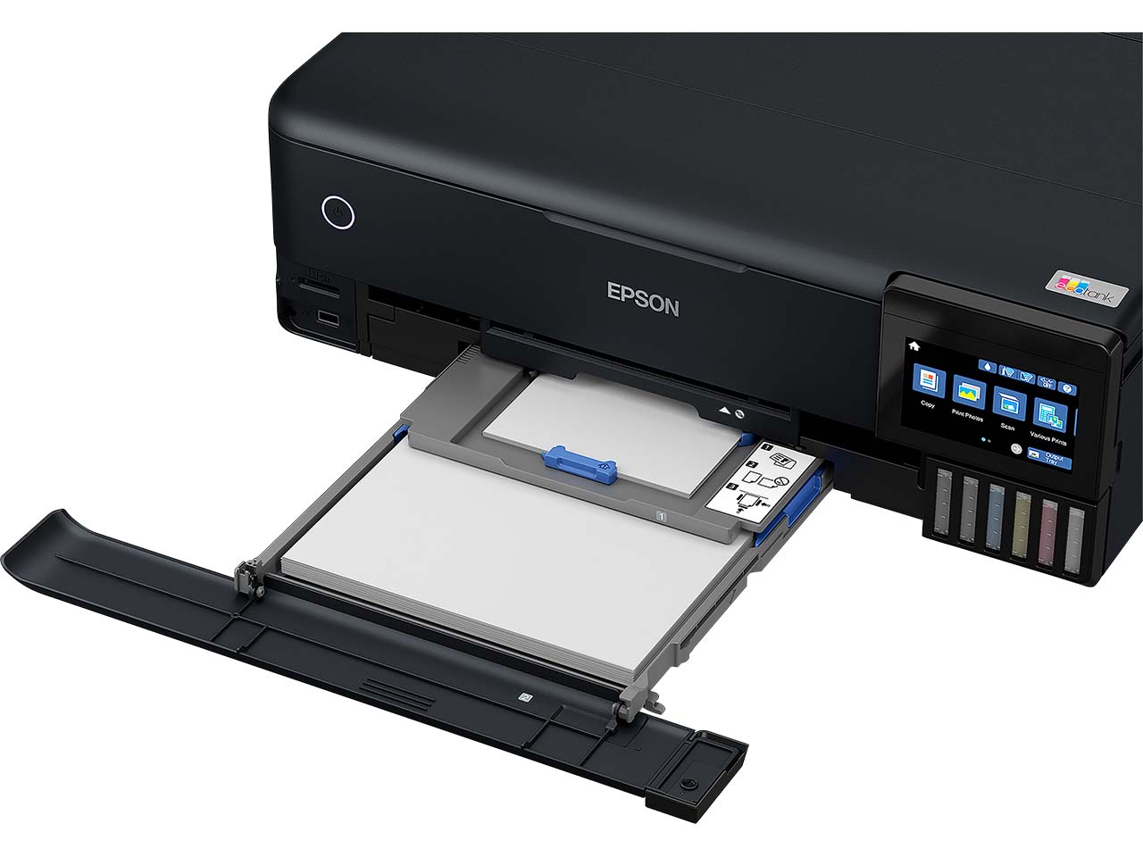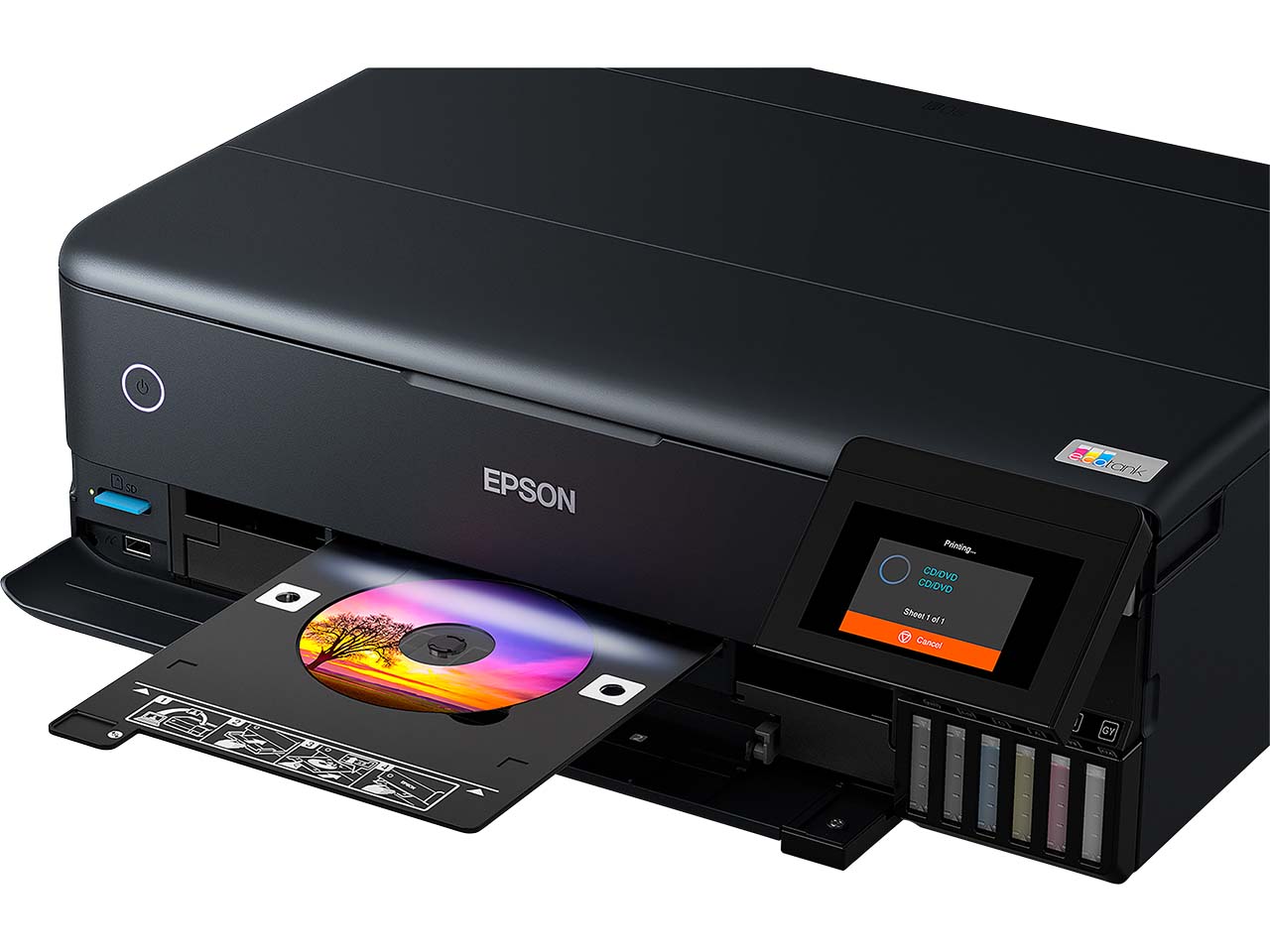 Das 6-Farben-Tintentanksystem und das 5-Wege-Medienmanagement zeichnen den 3-in-1 Tintenstrahl-Multifunktionsdrucker von Epson aus. Er ist ideal für randlose DIN A3+ Bilder in Farbe sowie beeindruckende Schwarz-Weiß-Fotos. Ein Satz Tintenflaschen reicht für bis zu 2.300 hochwertige Ausdrucke, wobei die Epson Claria ET Premium-Tinten für langlebige und qualitativ hochwertige Fotos sorgen. Dieser wirtschaftliche Drucker ist sowohl für alltägliche als auch für anspruchsvolle Druckaufgaben zu Hause bestens geeignet. Der Drucker ermöglicht das direkte Drucken von Smartphones, SD-Karten, USB-Sticks und Tablets. Die komfortable Bedienung erfolgt über einen 10,9 cm großen Farb-Touchscreen. Zudem kann der Drucker auf CDs und DVDs drucken und verfügt über separate Papierfächer für Normal- und Fotopapier. Das Papierfach unterstützt Formate bis DIN A3+ und ist auch für Medien wie Bastelpapier und Karten geeignet. B 523 x T 379 x H 169 mm.