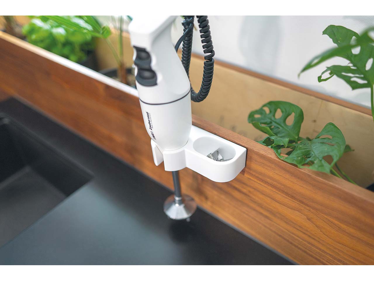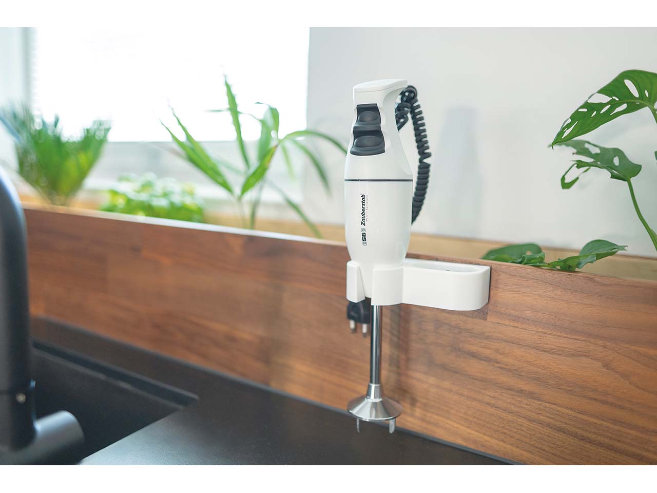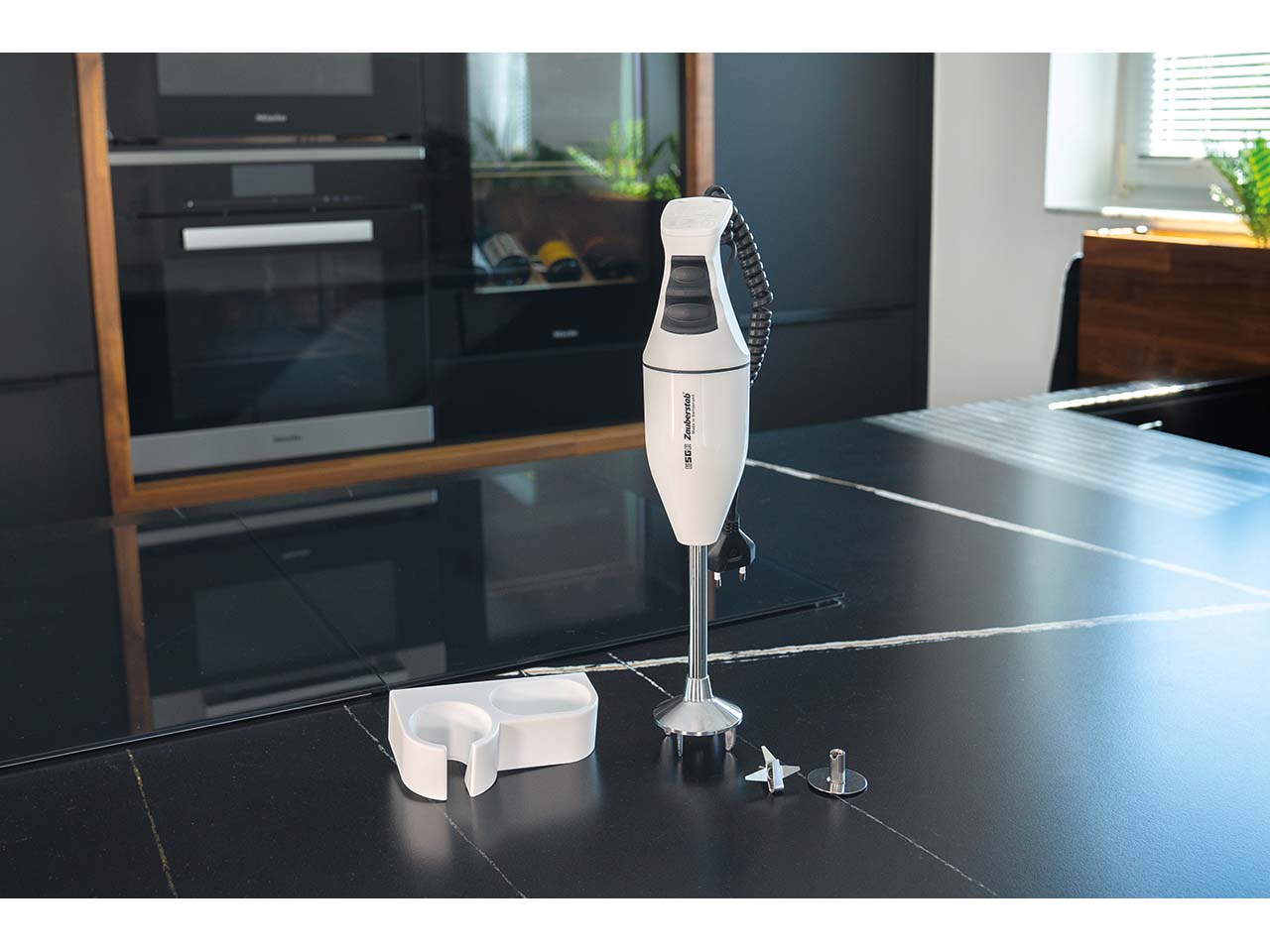 Dieser Stabmixer ist, wie sein Name schon sagt, ein echter Zauberstab! Ob Sahne schlagen, Mayonnaise selber machen, Eiswürfel crushen oder einen Teig für Pancakes mixen – der Stabmixer schafft dank Multimesser zum Zerkleinern, Hacken und Rühren sowie Schlagscheibe einfach alles. Damit er immer griffbereit ist, wird er mit einer Wandhalterung geliefert. Der ergonomisch gestaltete Griff mit zweistufigem Soft-Touch-Membranschalter liegt exzellent in der Hand.