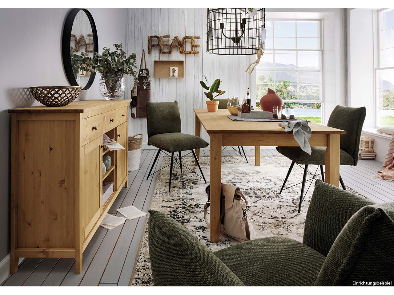 Das beim Möbelbau beliebte Kiefernholz bietet exzellente Eigenschaften: Es ist sehr leicht und der Transport somit besonders einfach. Kiefern sind in der Natur oftmals schwierigen Bedingungen ausgesetzt und daher ist ihr Holz extrem robust und stabil, was das Produkt außerordentlich langlebig macht. Beim Aussehen punktet das Holz mit rötlichen oder gelblichen Tönen sowie sichtbaren Jahresringen und Harzkanälen. Die Maserung ist mit Astlöchern und Unregelmäßigkeiten besonders natürlich.