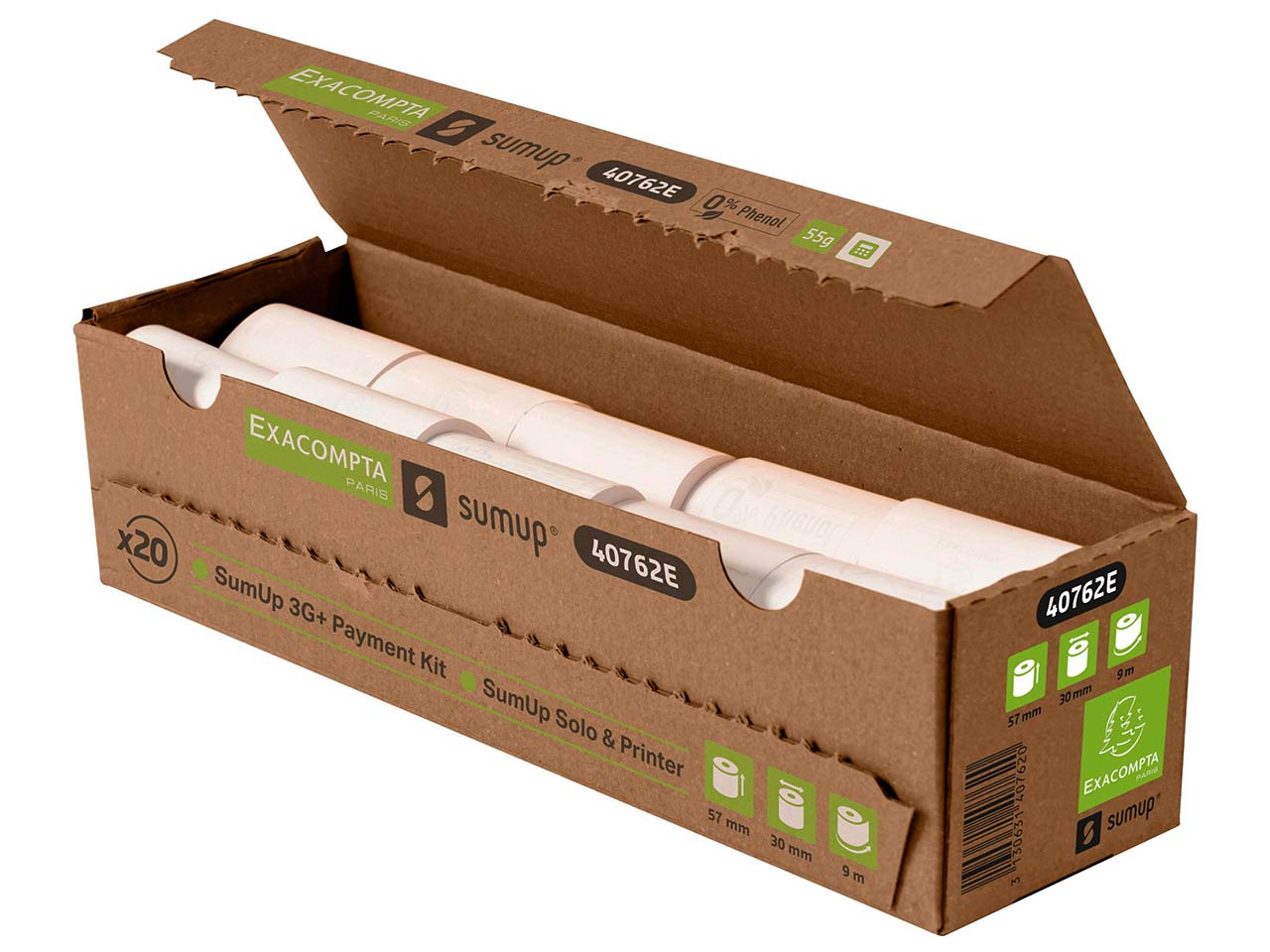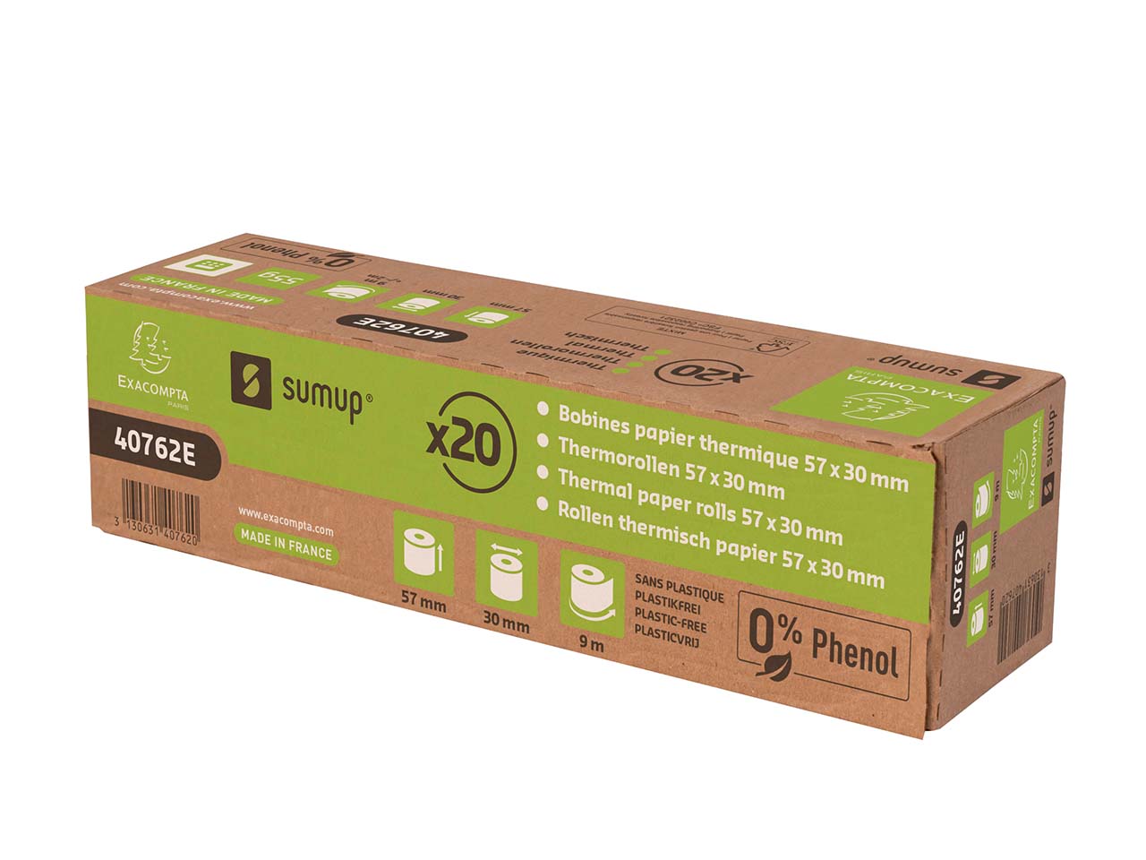 Exacompta Bisphenolfreie Thermoprinter-Rollen für Sum-Up Terminals, Breite 57 mm x 30 mm, 20 Stk.