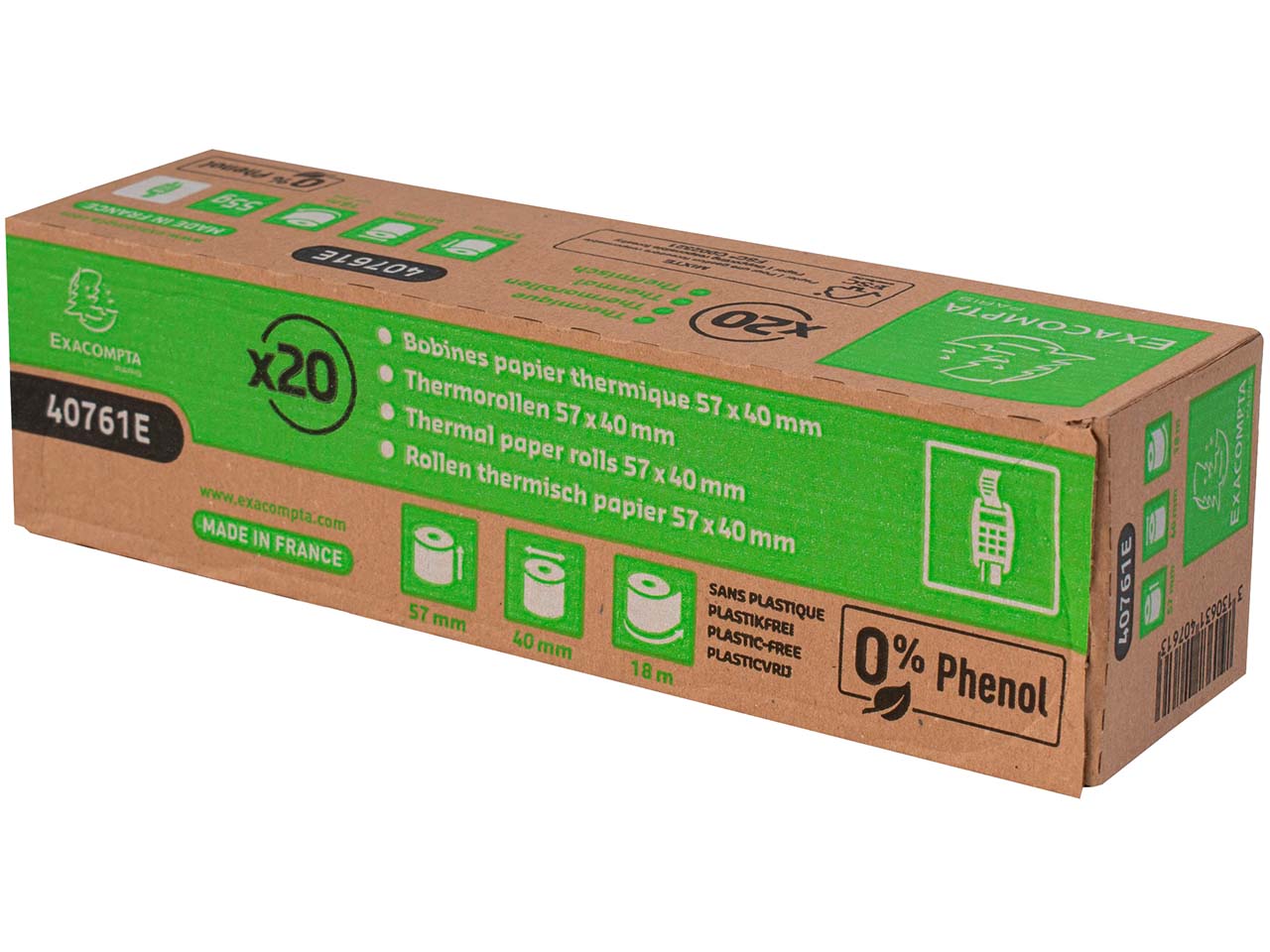 Exacompta Bisphenolfreie Thermoprinter-Rollen, Breite 57 mm x 40 mm, 20 Stk., plastikfrei