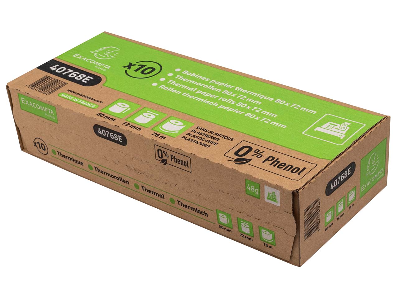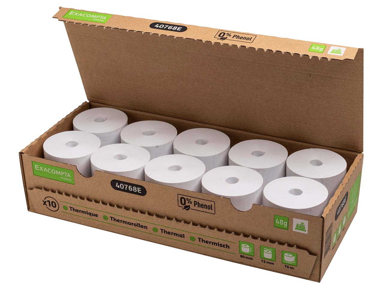 Exacompta Bisphenolfreie Thermoprinter-Rollen, Breite 80 mm x 72 mm, 10 Stk., plastikfrei