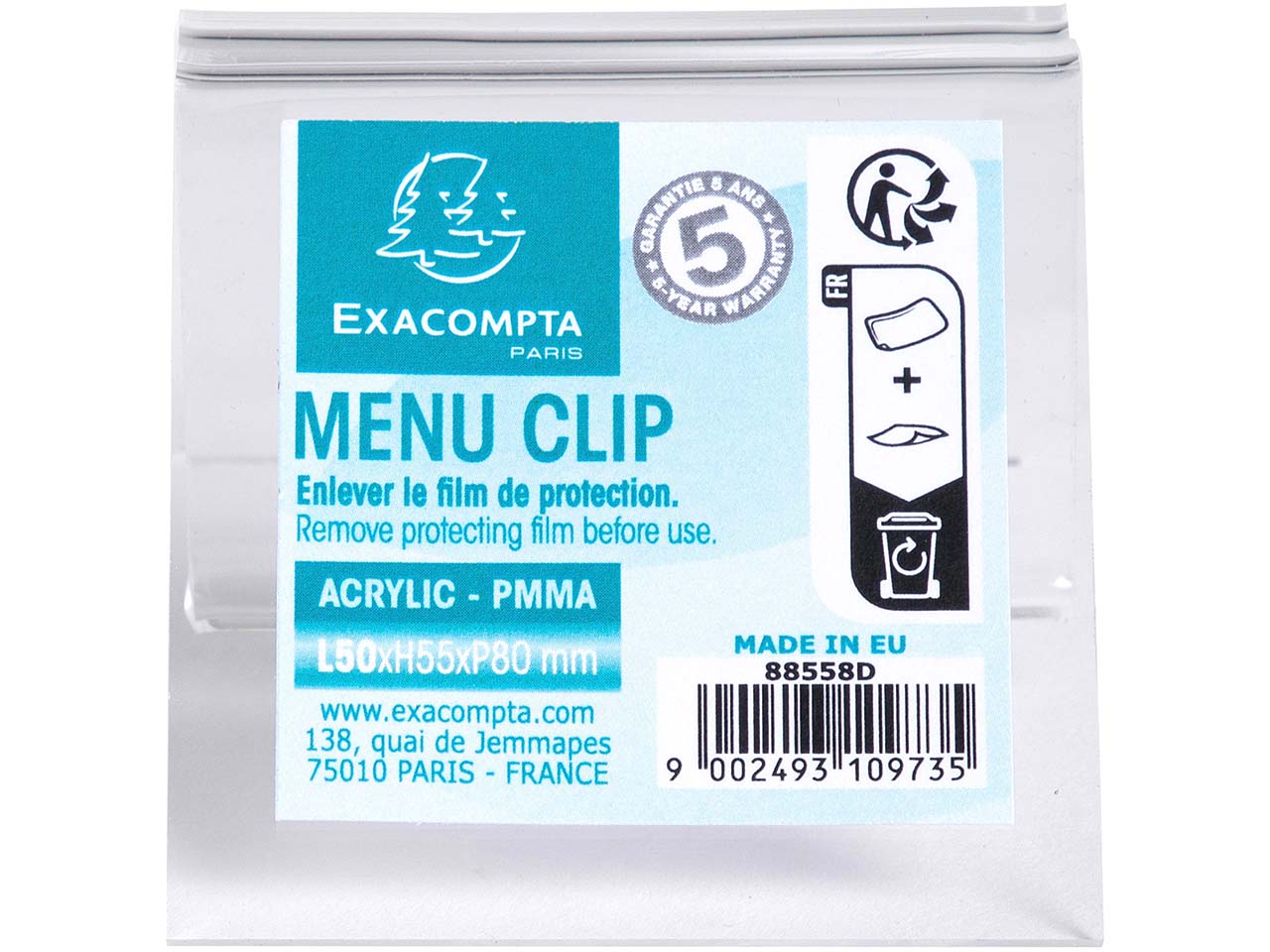In dem Klemmkartenhalter aus hochwertigem Acryl lassen sich Menüs, Schilder, Etiketten oder Namensschilder exzellent präsentieren. Das Material ist stabil, langlebig und UV-beständig, sodass es nicht vergilbt. Die Karten müssen einfach nur eingeschoben werden. Der Klemmkartenhalter ist vielseitig einsetzbar und macht sich hervorragend auf Tischen, Schreibtischen oder im Regal.