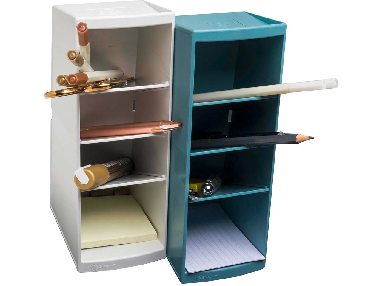 Der mit dem Blauen Engel ausgezeichnete Multitower sorgt für mehr Ordnung auf dem Schreibtisch! In den vier Fächern finden Schreibgeräte und andere Utensilien wie Schere, Lineal und Notizzettel Platz. Praktisch: Der Ordnungshelfer kann stehend und liegend verwendet werden! Es können auch mehrere aneinandergereiht und mithilfe der mitgelieferten Clips fixiert werden. Der Multitower aus Recyclingkunststoff ist vielseitig einsetzbar im Haushalt, im Büro und im Homeoffice.