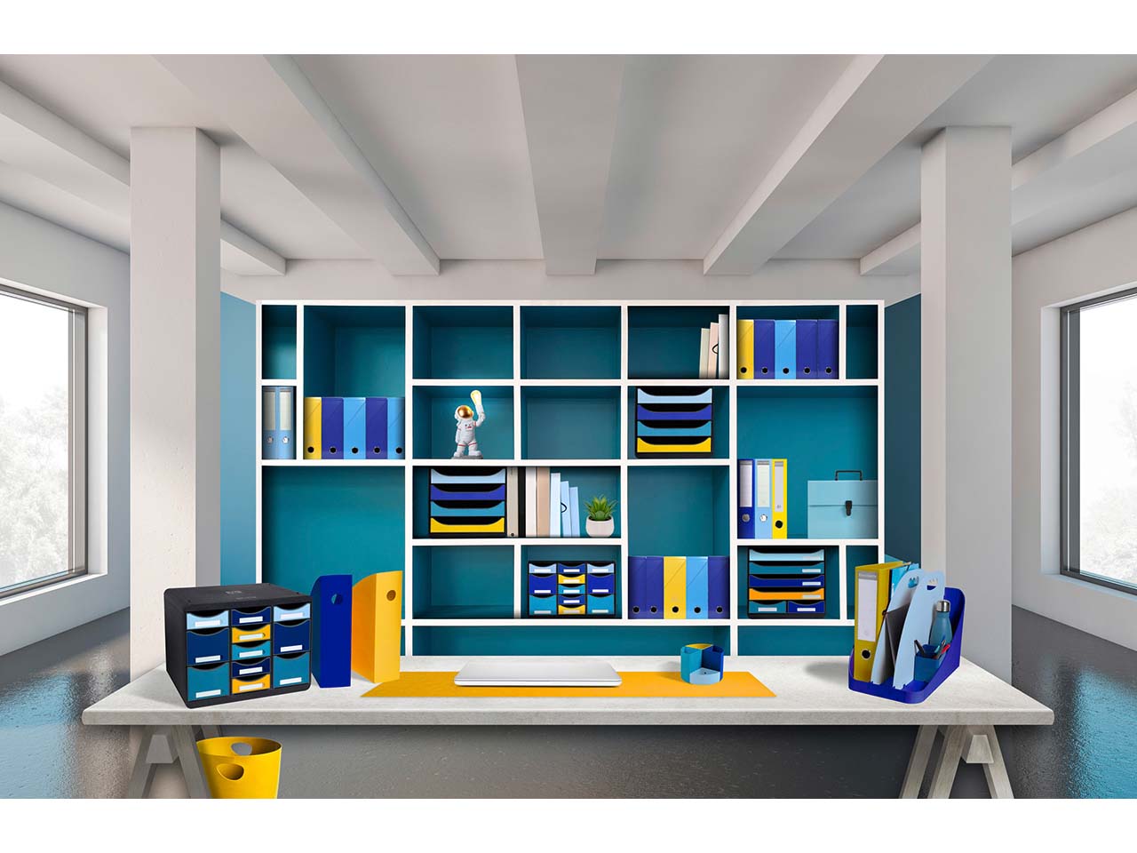 - Trendiger, farbenfroher Papierkorb