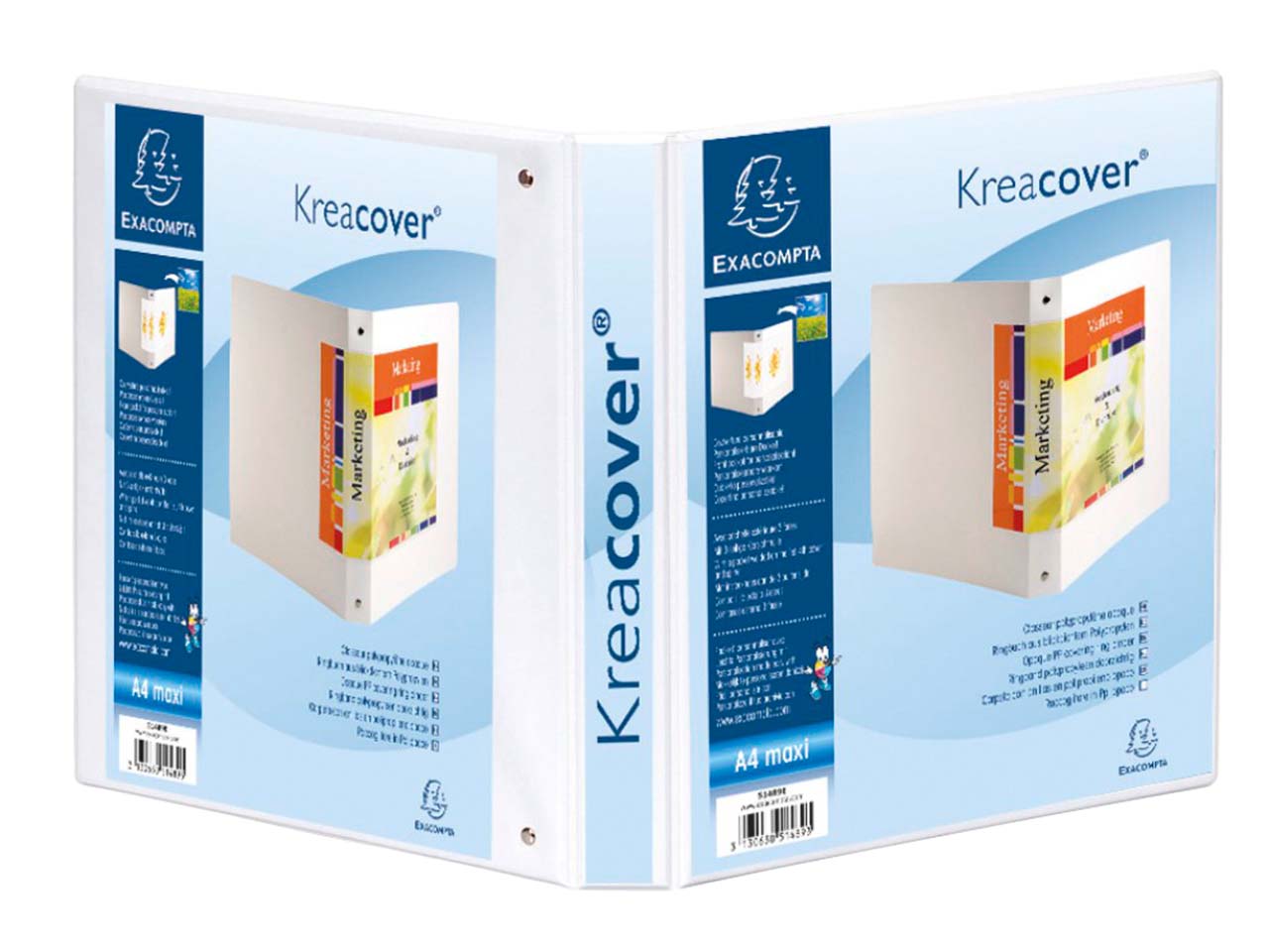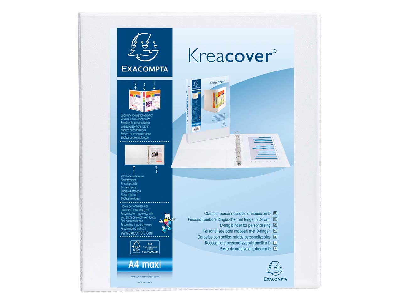 Das FSC-zertifizierte, mit dem Blauen Engel ausgezeichnete Exacompta Ringbuch hat eine 4-Ring-Mechanik. Besonderheit: Sie gestalten das Cover nach Ihren Vorstellungen themenbezogen oder Corporate Design entsprechend selbst. Die individuellen Vorlagen werden in die 3 Klarsichthüllen eingelegt. Das Präsentationsringbuch eignet sich für Dokumente im Format DIN A4. Ring-Ø 30 cm.