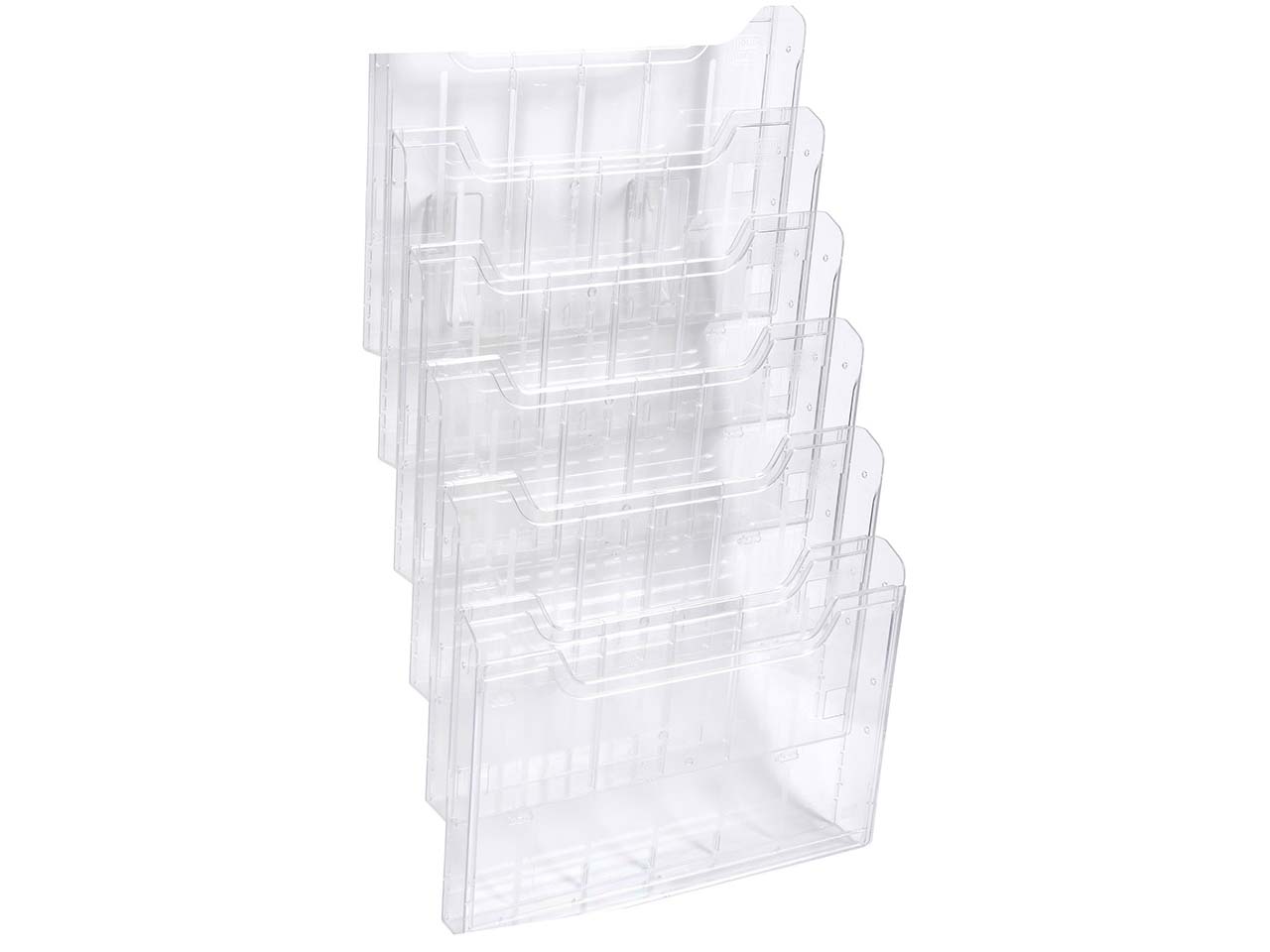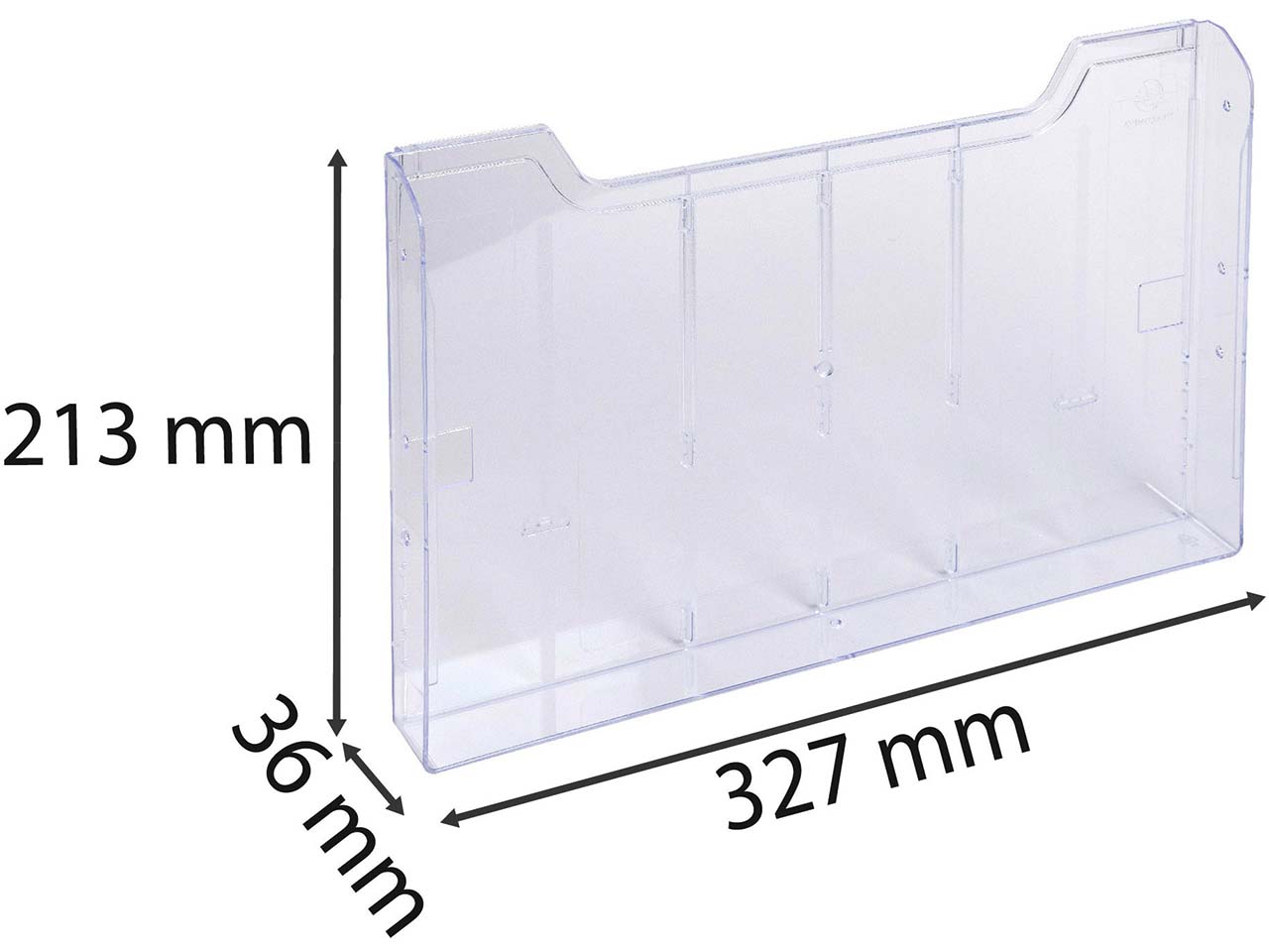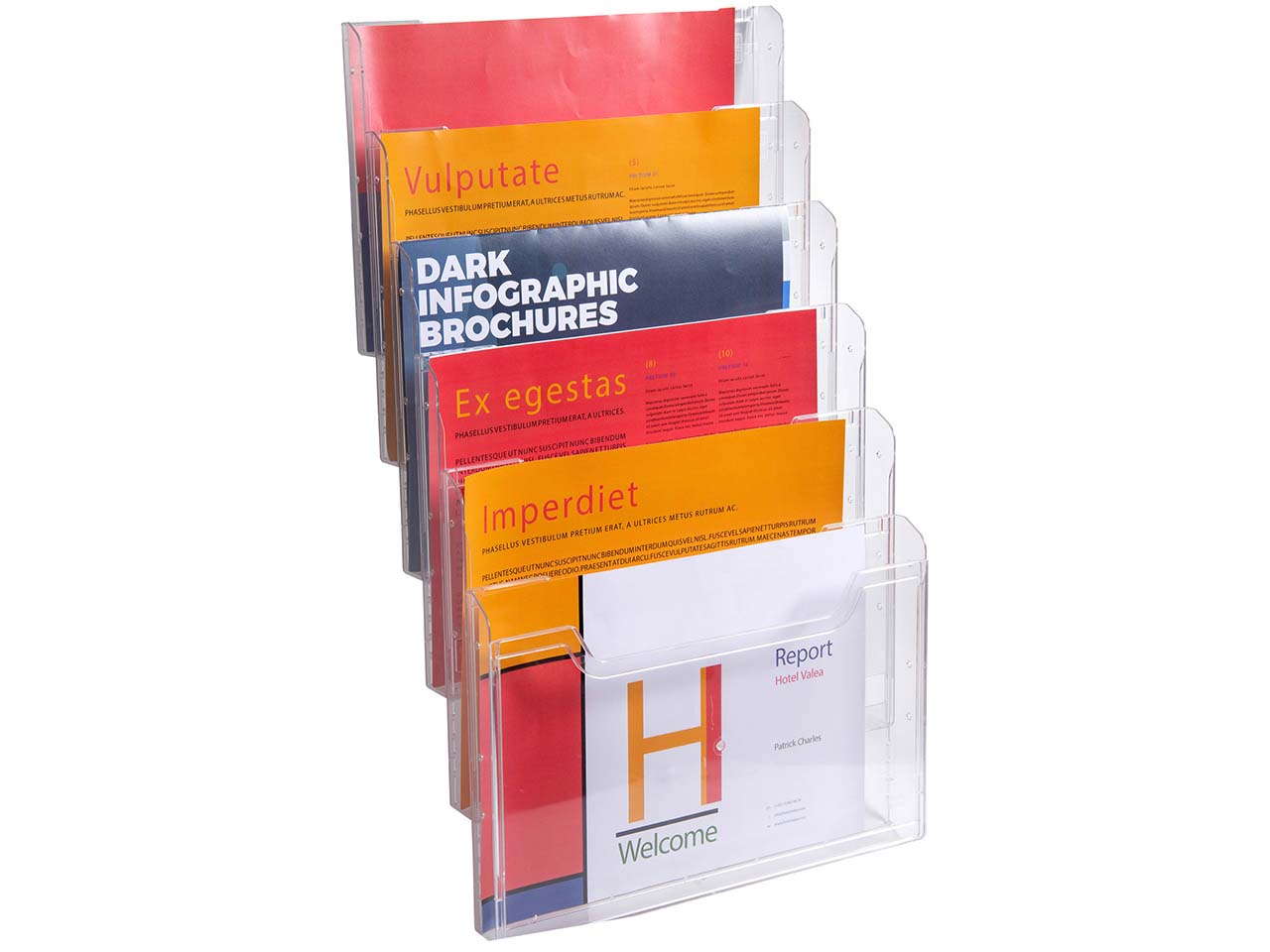 Das Einzelelement ist speziell für die Anbringung an der Wand konzipiert. Es können mehrere Prospekthalter neben- oder untereinander angebracht werden – ideal, um Prospekte, Flyer, Kataloge und Co. individuell zu präsentieren. Hergestellt ist der Prospekthalter aus robustem, UV-beständigem Kunststoff. Er vergilbt nicht. Die Montage an der Wand gestaltet sich einfach.