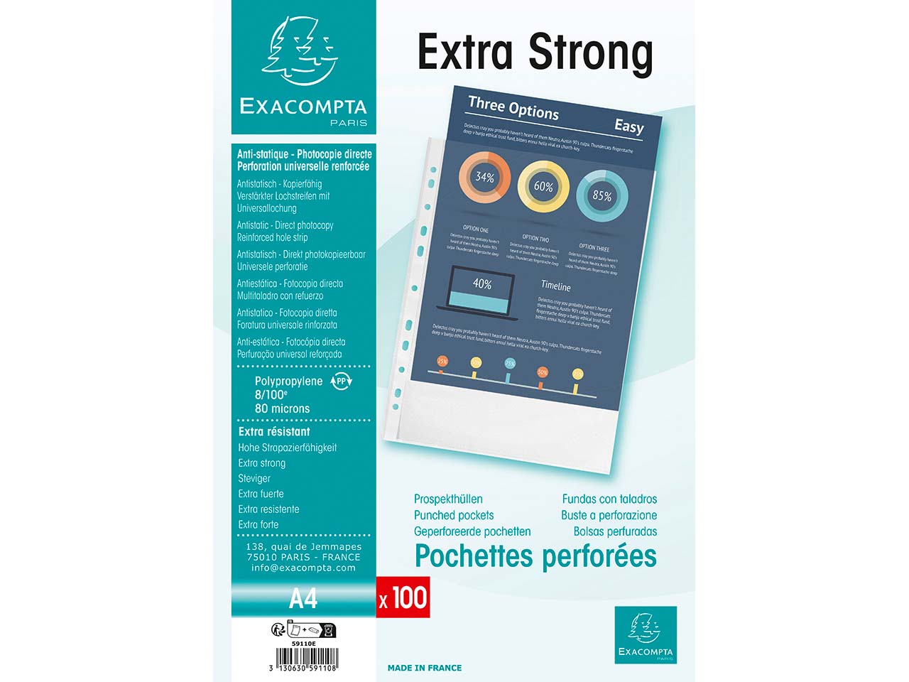 Exacompta Prospekthüllen genarbt, DIN A4, 80µ, 100 Stk.