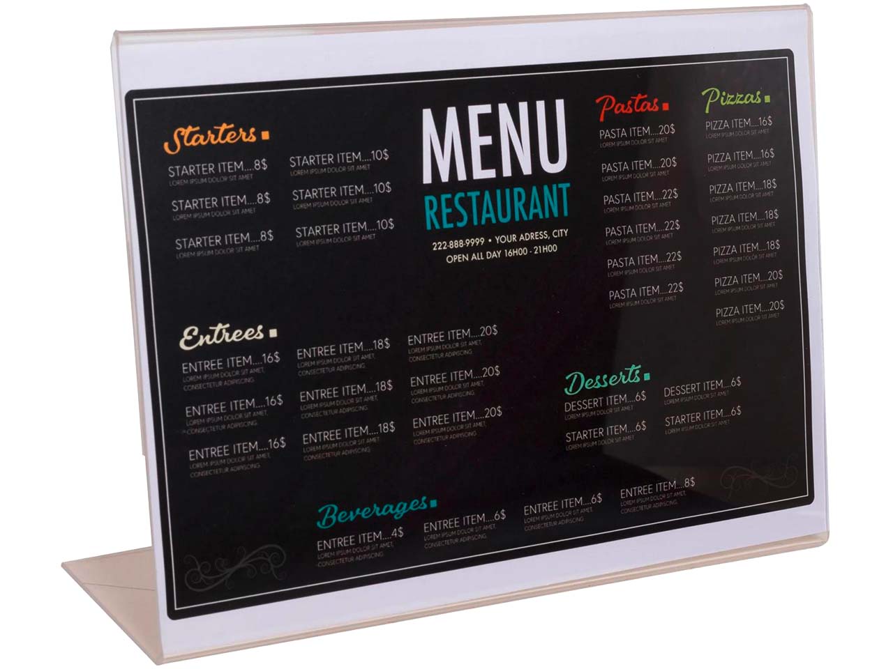 - Hochwertiger, horizontal geneigter Acryl-Tischaufsteller