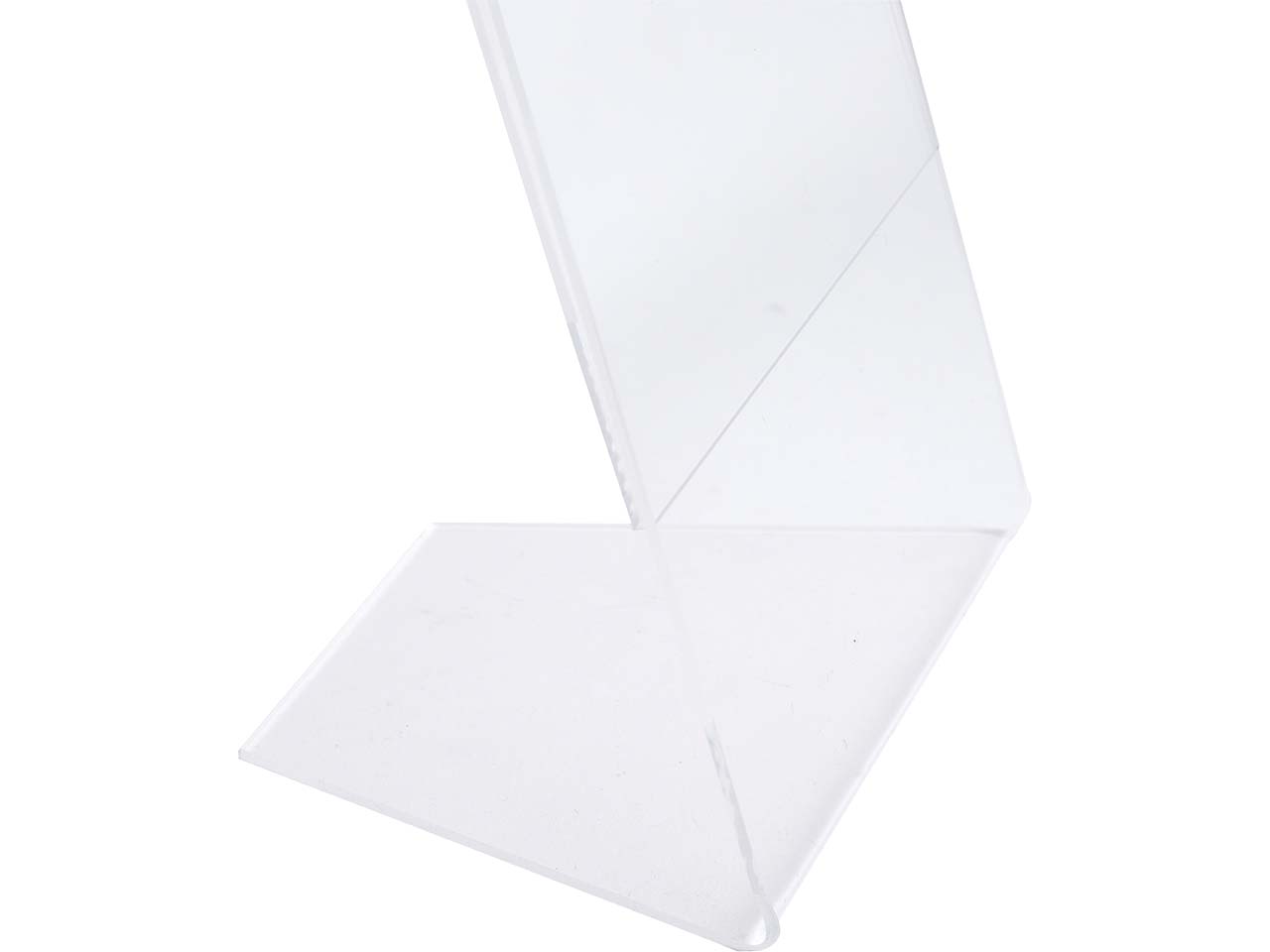 Dem Schreibtisch eine individuelle Note verleihen oder das Lieblingsfoto ins Regal stellen: Der Tischaufsteller ist in beiden Fällen die perfekte Wahl! Der Aufsteller aus hochwertigem Acryl hat eine sehr hohe Transparenz, sodass der Inhalt optimal hervorgehoben wird. Das Material ist UV-beständig und vergilbt nicht. Die vertikale Neigung sorgt ebenfalls für eine optimale Sichtbarkeit von Fotos oder Dokumenten. Dank des abgeschrägten Fundaments ist es möglich, den Tischaufsteller vertikal oder horizontal zu nutzen.