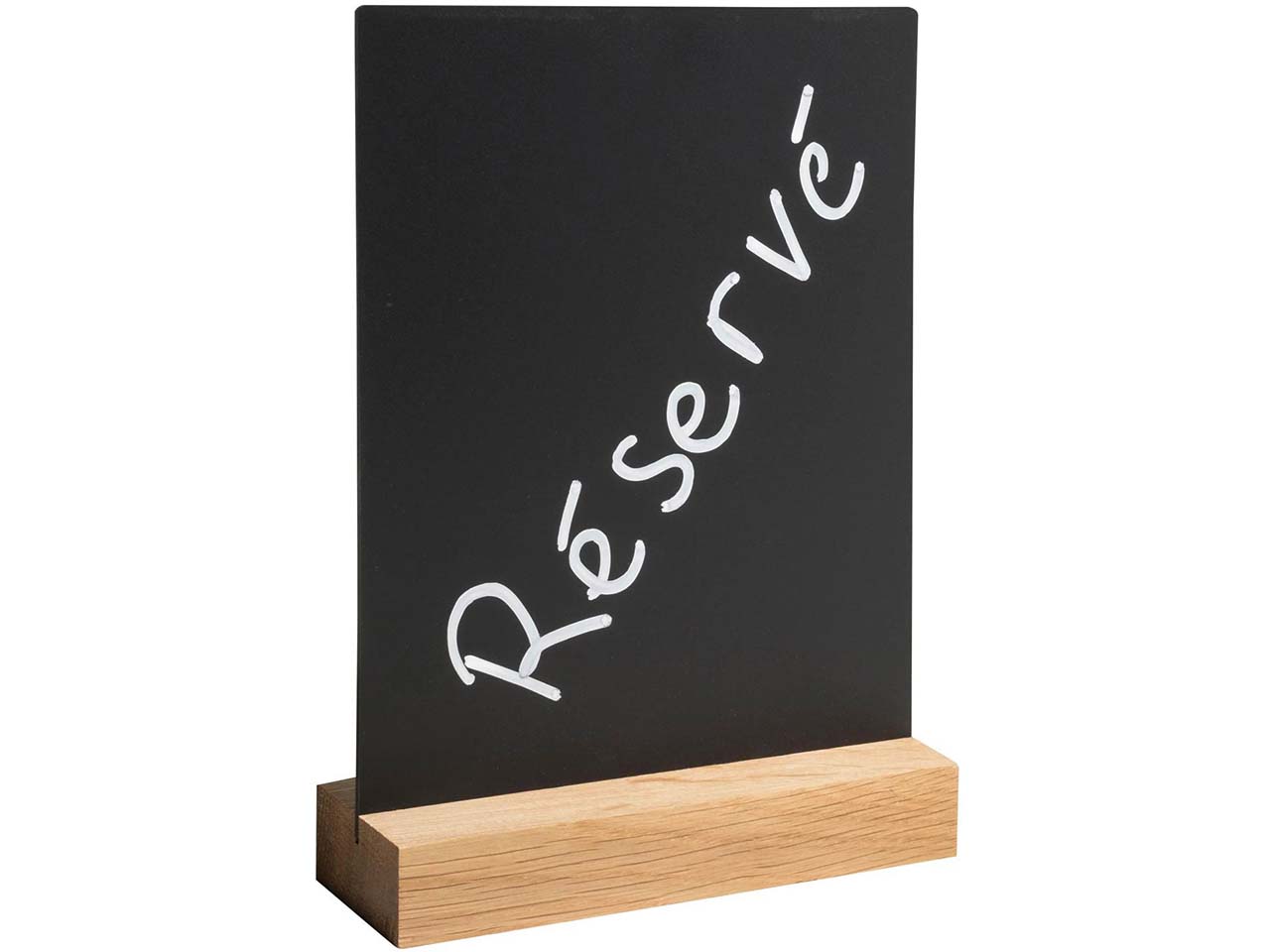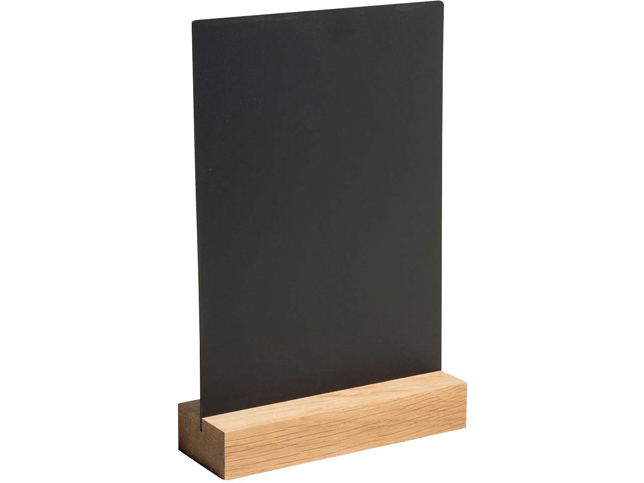 Perfekt, um Tagesmenüs, Angebote, Preise oder Mitteilungen in Szene zu setzen! Die Tischtafel in ansprechender Schieferoptik und Sockel aus FSC-zertifiziertem Holz überzeugt mit hoher Dichte und exzellenter Stabilität. Sie lässt sich mit Kreide oder Kreidestift beidseitig beschriften. Bei Bedarf kann die Beschriftung entfernt und neu gemacht werden. Dadurch ist die Tisch-Kreidetafel vielseitig einsetzbar.