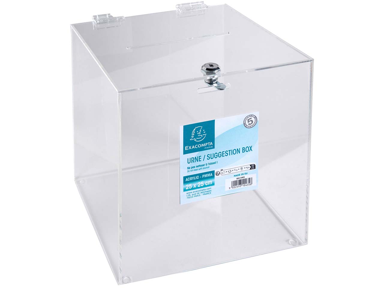 Als Losbox für Verlosungen, für Gewinnspiele oder für Abstimmungen: Die abschließbare Urne ist vielseitig einsetzbar! Dank sicherem Verschluss eignet sie sich auch hervorragend für Wahlen jeder Art. Sie besteht aus hochwertigem, robustem Acryl, das stoß- und lichtunempfindlich ist.