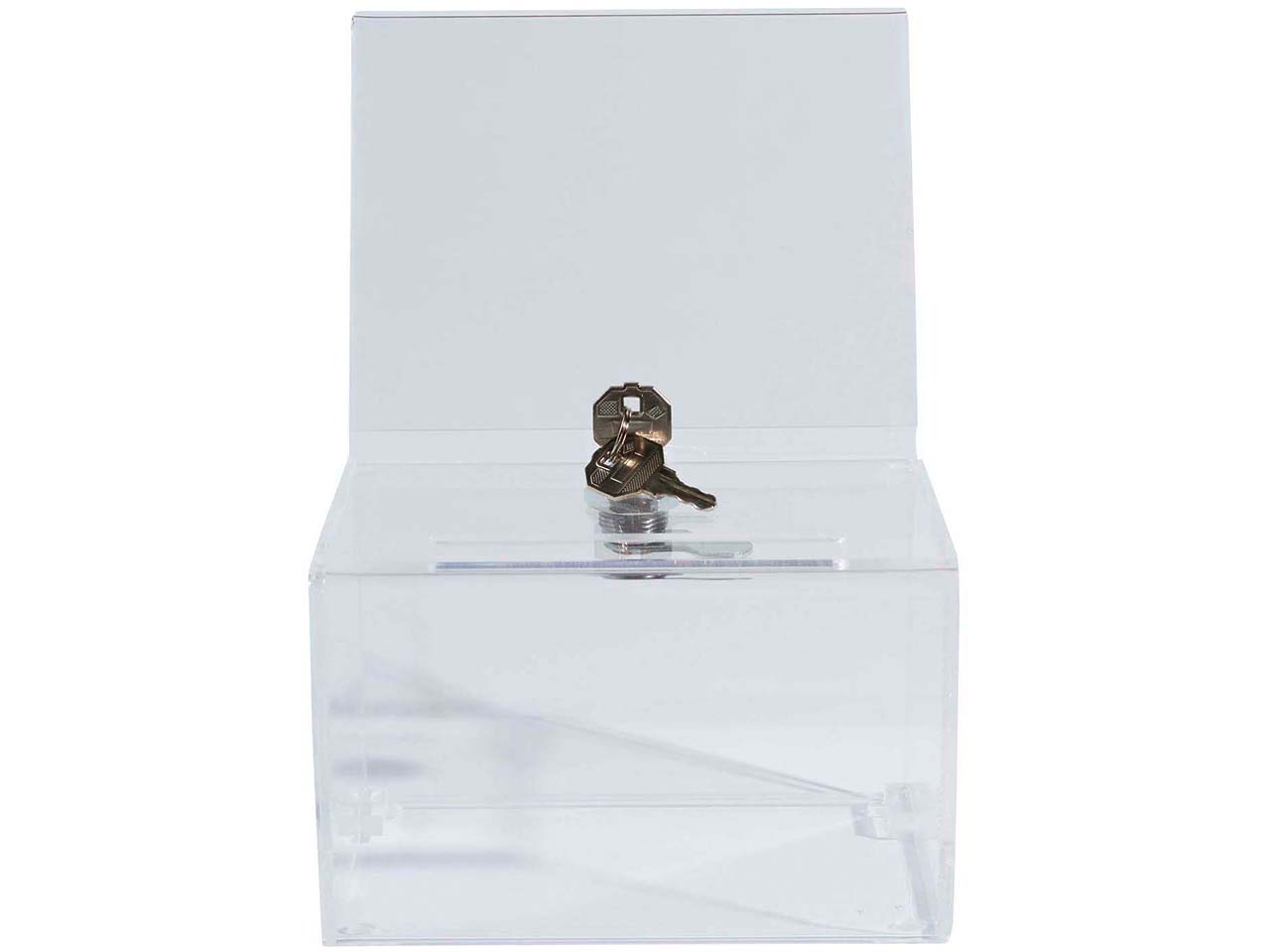 Ob als Wahlurne, als Einwurfbox für Ideen oder als Lostopf: Diese Urne aus stabilem, hochwertigem Acryl eignet sich für viele Zwecke! Sie ist stabil und UV-beständig. Die Kopfblende im Format DIN A5 kann für Medien wie Bilder verwendet werden, sodass sofort ersichtlich ist, wofür die Urne steht. Die hochtransparente Urne ist abschließbar.