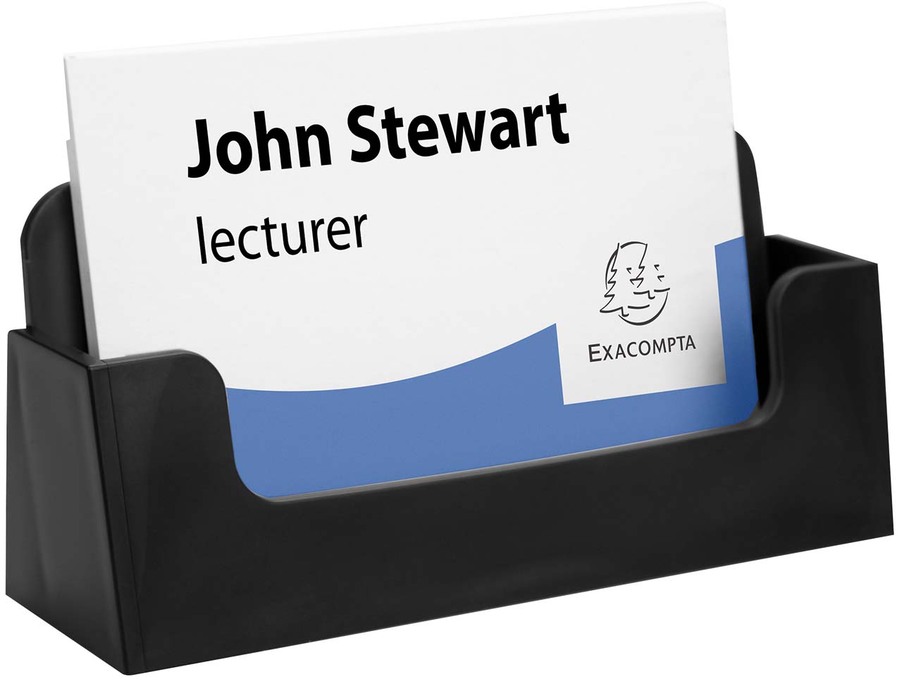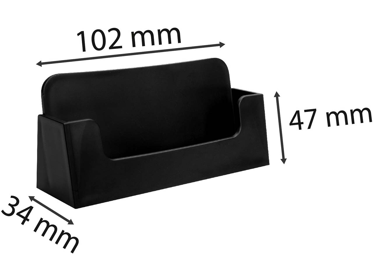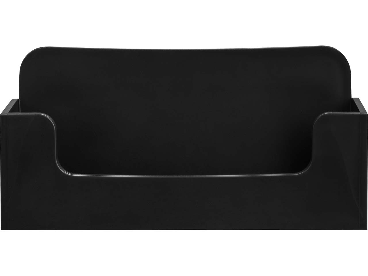 Stilsicher, praktisch und mit dem Blauen Engel ausgezeichnet: Der schwarze Visitenkartenhalter aus Recyclingkunststoff ist aus einem Stück gefertigt und bietet Platz für bis zu 50 Visitenkarten. Er stellt ein sinnvolles Bürozubehör für den Schreibtisch dar.
