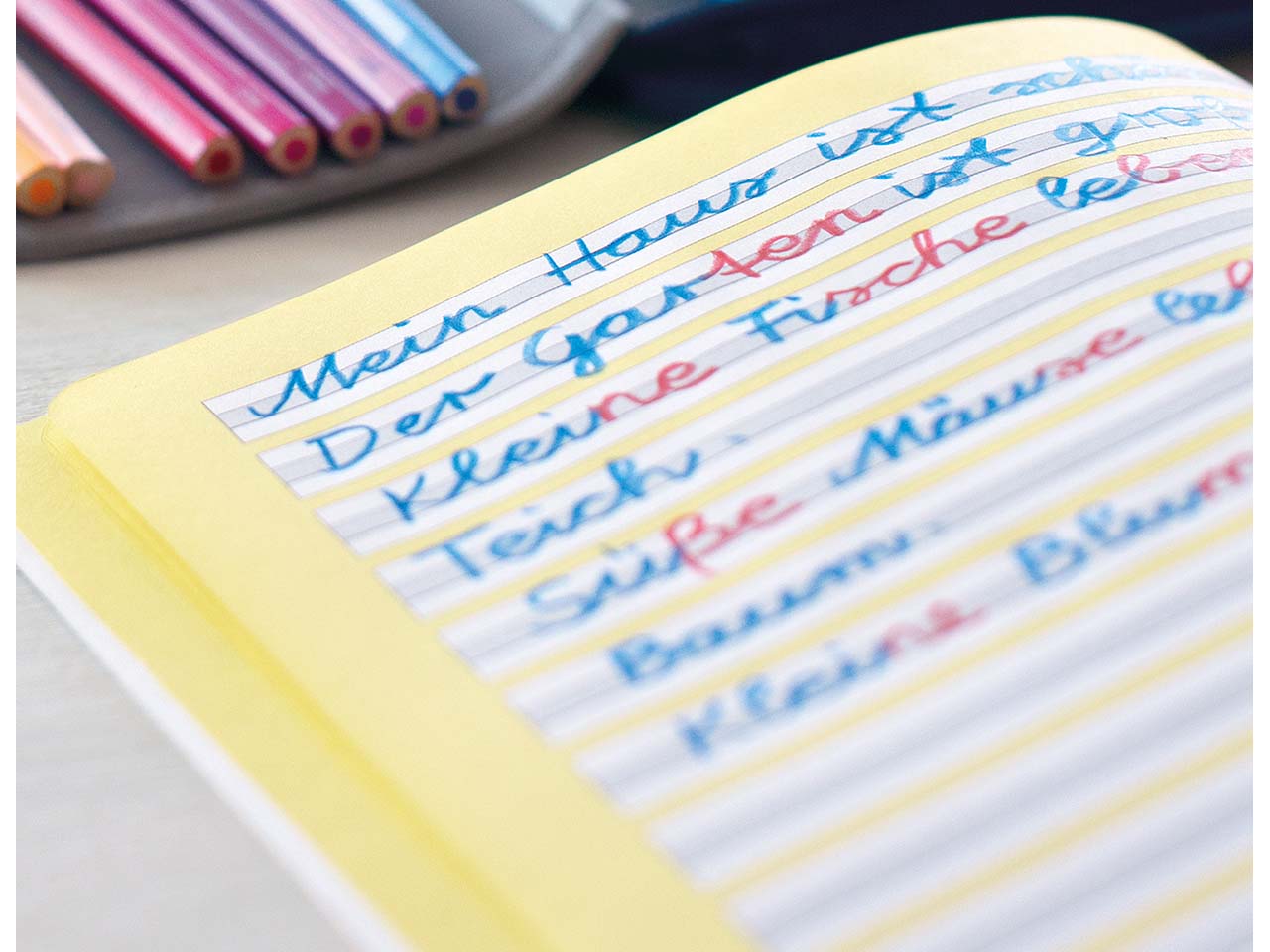 Der Silbentrennstift von Faber-Castell ist mit dem dicken, dreieckigen Schaft optimal an die Ergonomie von Kinderhänden angepasst. Der Zweifarbstift aus FSC-zertifiziertem Holz eignet sich daher auch perfekt für die ersten Schreibübungen. Er unterstützt das visuelle Erlernen von Rechtschreibregeln. Einzelne Buchstaben oder ganze Wörter lassen sich mit der roten Seite des Stifts schreiben und stehen so im Kontrast zu Buchstaben, die mit der Bleistiftseite geschrieben werden. Die rote Mine ist auch perfekt zum Korrigieren in der Schule geeignet! Durch die patentierte Grip-Zone rutschen die Finger beim Schreiben nicht ab. Die Spezialverleimung sorgt dafür, dass die Mine besonders bruchfest ist.