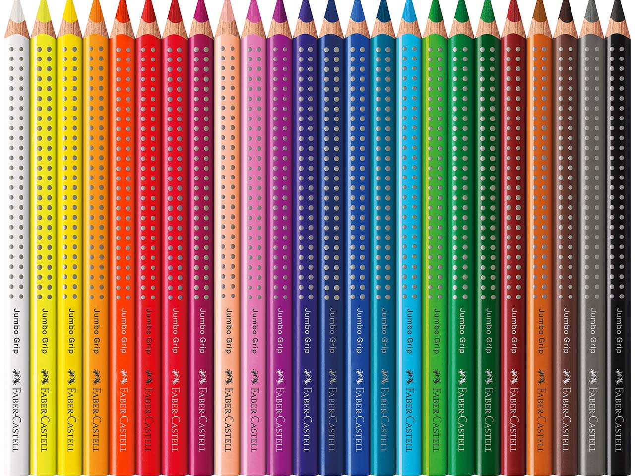 Mit diesen praktischen Buntstiften von Faber-Castell werden Bilder richtig bunt! 16 verschiedene Farben sind in dem Metalletui untergebracht. Die Stifte aus FSC-zertifiziertem Holz sind mit umweltverträglichem Wasserlack lackiert und zeichnen sich durch ihre extra dicke Mine aus. Die Jumbo-Form ist vor allem für jüngere Kinder ein Vorteil. Die Stifte sind perfekt an die Ergonomie von Kinderhänden angepasst und haben eine Soft-Grip-Zone, die einen rutschfesten Griff gewährleistet. Die Farben sich leuchtend und sogar wasservermalbar. Einfach mit einem Pinsel über die gemalten Bilder streichen und schon entstehen spannende Aquarelleffekte. Die Buntstifte haben dank der Spezialverleimung eine besonders bruchsichere Mine, sodass Kinder lange Freude daran haben. Inhalt 16 Stück, farblich sortiert.