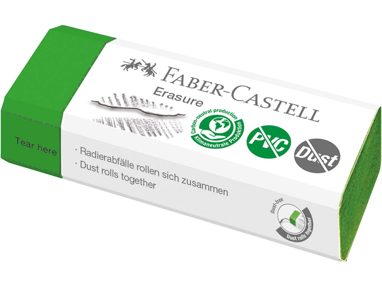 Das praktischer 2er-Set, um kleine Fehler auszubessern! Die PVC-freien Radiergummis von Faber-Castell sind immer zur Stelle, wenn es darum geht, Buntstift- oder Bleistiftmarkierungen zu radieren. Es fällt bei der Nutzung wenig Radierabfall an. Die Reste rollen sich zusammen und lassen sich einfach entsorgen. Die Radierer bestehen aus Kautschuk und erzielen exzellente, schmierfreie Radierergebnisse.