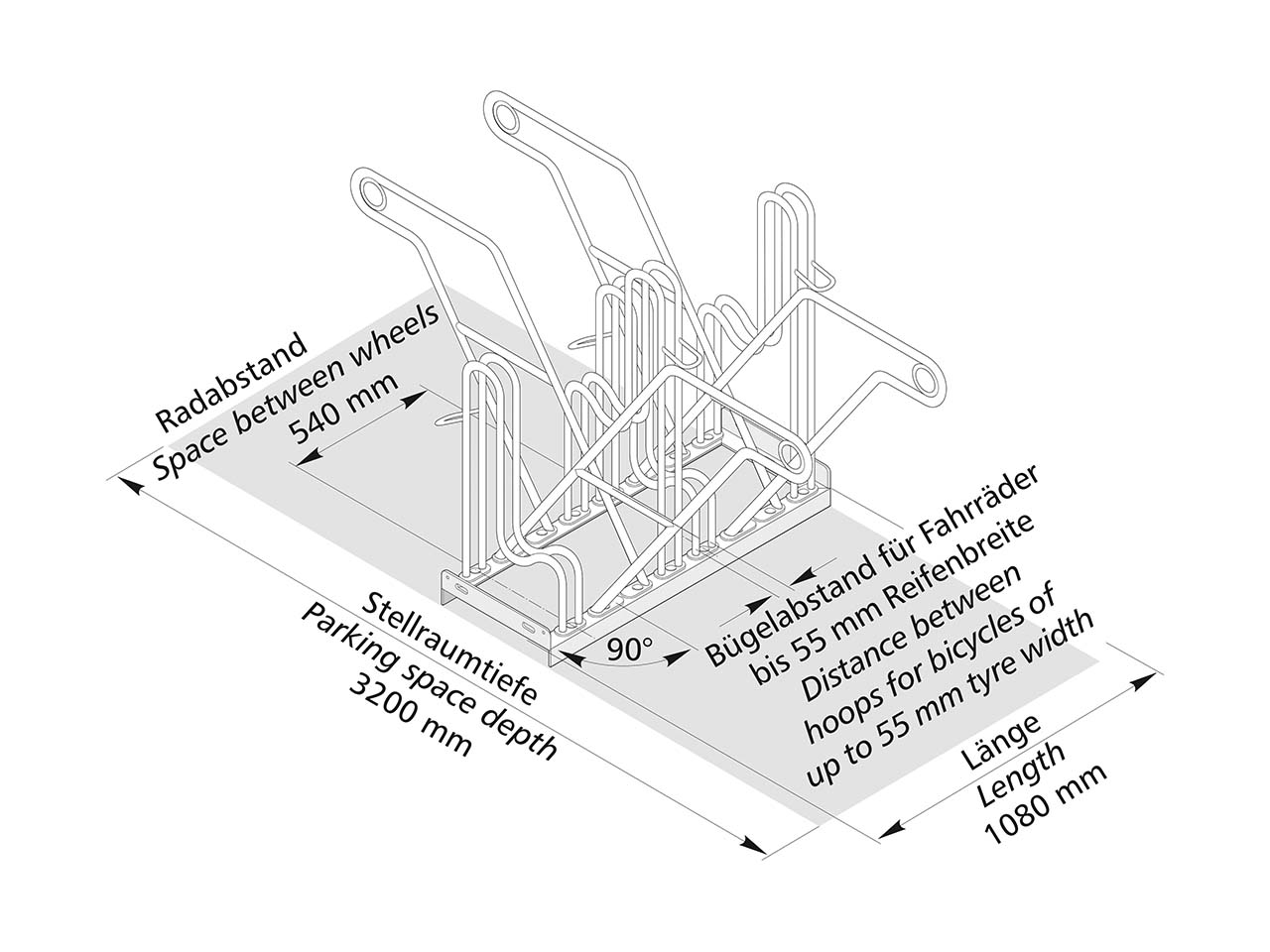 Der vom ADFC empfohlene Fahrradständer "Anlehnparker 4600 XBF" ermöglicht mit abwechselnder Hoch-/Tiefeinstellung ein platzsparendes Parken. Die 200 mm vereinfachen die Handhabung mit extrabreiten Lenkern. Durch den komfortablen Radabstand von 540 mm werden andere Räder beim Ein-/Ausparken nicht beeinträchtigt oder beschädigt. Der moderne Fahrradständer ist zur Reihenverbindung und Bodenbefestigung vorbereitet und erweiterbar. Für 4, 8 oder 12 Einstellplätze.