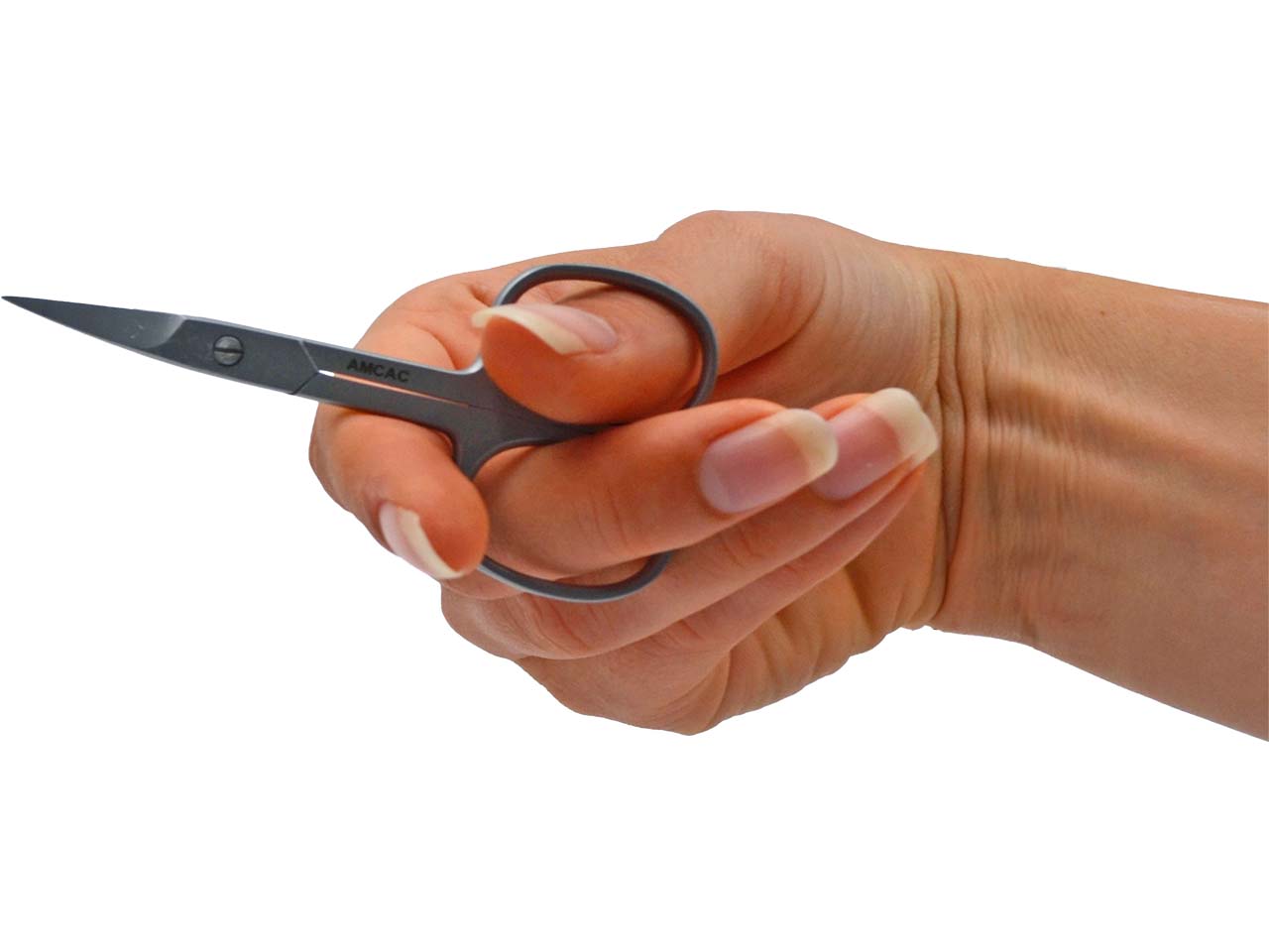 - Mit gebogener Schneide zum Schneiden feiner Härchen und Nagelhaut