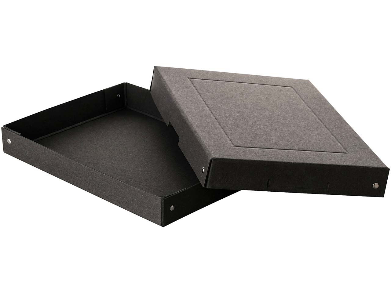 Edles Schwarz und plastikfreie Qualität zeichnen diese Schachtel mit Deckel und Box aus. Sie bietet dank der Herstellung aus hochwertiger, veredelter Buchbinderpappe eine hohe Stabilität. Die nach dem Blauen Engel und FSC zertifizierte Schachtel verfügt über eine Griffaussparung und ein Beschriftungsfeld. Die Einsatzzwecke sind vielfältig: Die Box dient als innovative Geschenkverpackung, zur Aufbewahrung und Transport von Dokumenten und vielem mehr. Die genietete Schachtel im Format DIN A4 hat eine Füllhöhe von 40 mm.