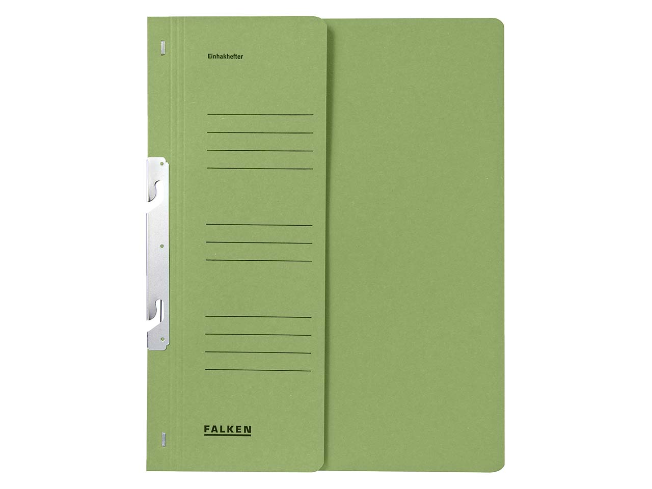 Der praktische Falken Einhakhefter in 250 g/m²-Qualität ist aus Manila-Recyclingkarton hergestellt. Der Rücken hat einen Einhak-Metallbeschlag, sodass der Hefter problemlos in Ordner eingehakt werden kann. Der Hefter mit kaufmännischer Heftung hat einen halben Vorderdeckel, Liniendruck sowie eine Metallheftzunge und eine Abdeckleiste. Die Füllhöhe von ca. 2 cm eignet sich für bis zu 200 Blatt (80 g/m²). Im Format DIN A4.