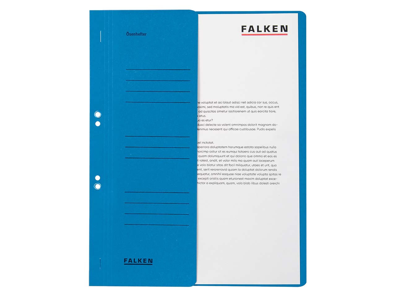 Der Falken Ösenhefter ist aus Manila-Recyclingkarton hergestellt und hat eine stabile 250 g/m²-Qualität. Der Hefter mit 8 cm-Lochung lässt sich problemlos abheften. Die Löcher sind durch Ösen verstärkt, sodass ein Ausreißen verhindert wird. Der Organisationsdruck auf dem halben Vorderdeckel bietet Platz für Beschriftungen. Die Füllhöhe von 2 cm eignet sich für 20 Blatt (80 g/m²). Im Format DIN A4.