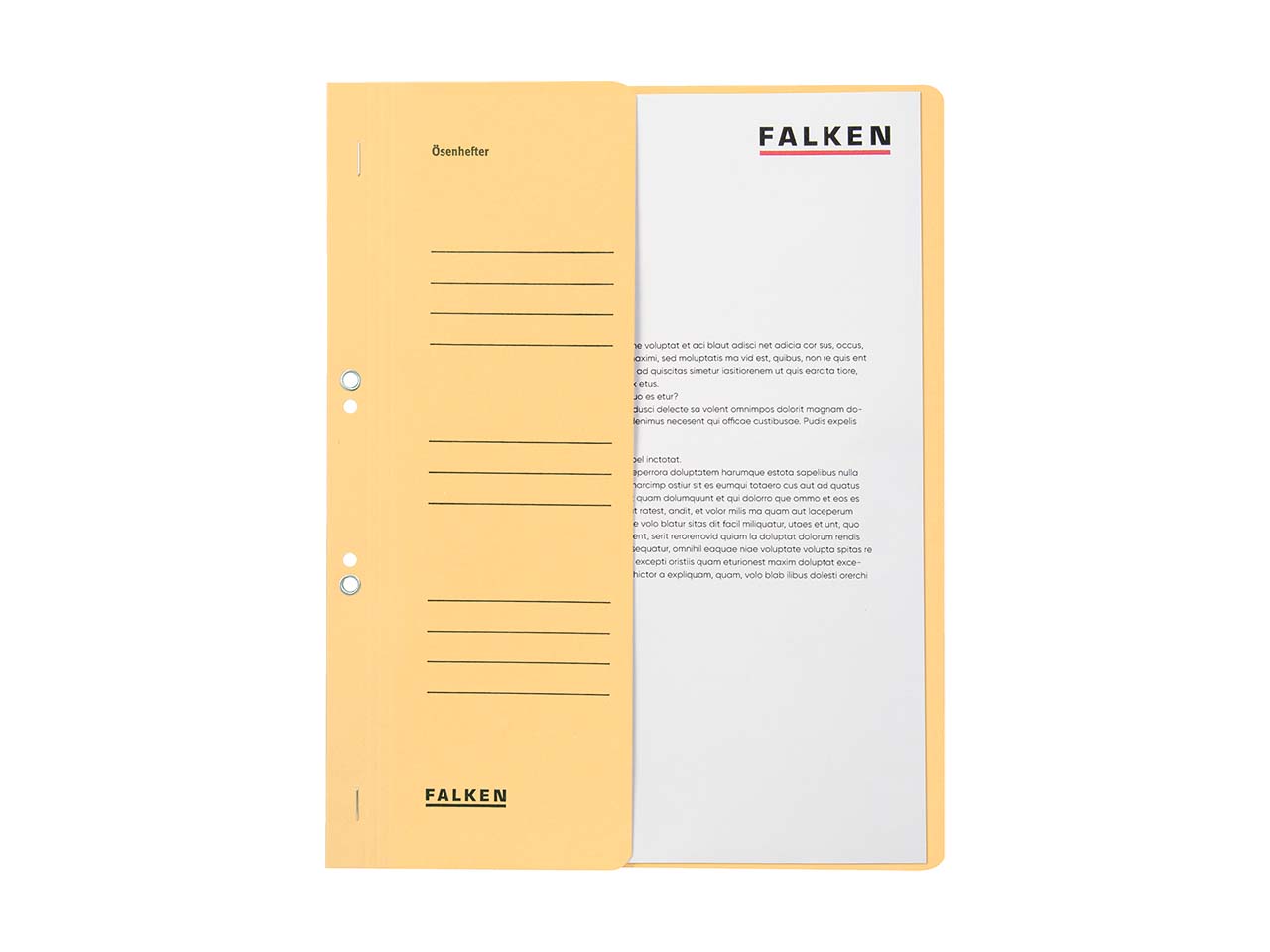 Der Falken Ösenhefter ist aus Manila-Recyclingkarton hergestellt und hat eine stabile 250 g/m²-Qualität. Der Hefter mit 8 cm-Lochung lässt sich problemlos abheften. Die Löcher sind durch Ösen verstärkt, sodass ein Ausreißen verhindert wird. Der Organisationsdruck auf dem halben Vorderdeckel bietet Platz für Beschriftungen. Die Füllhöhe von 2 cm eignet sich für 20 Blatt (80 g/m²). Im Format DIN A4.