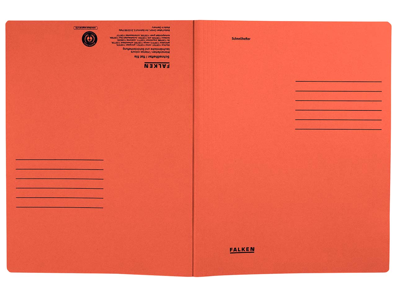 Mit dem klassischen Falken Schnellhefter aus Manila-Recyclingkarton heften Sie gelochtes Schriftgut ordentlich ab. Der stabile Hefter in 250 g/m²-Qualität verfügt über eine Heftzunge, Abdeckleiste aus Metall sowie Liniendruck auf dem Vorder- und Rückendeckel. Die Füllhöhe von ca. 2 cm bietet Platz für bis zu 200 Blatt (80 g/m²). Erhältlich in verschiedenen, intensiven Farbtönen. Im Format DIN A4.