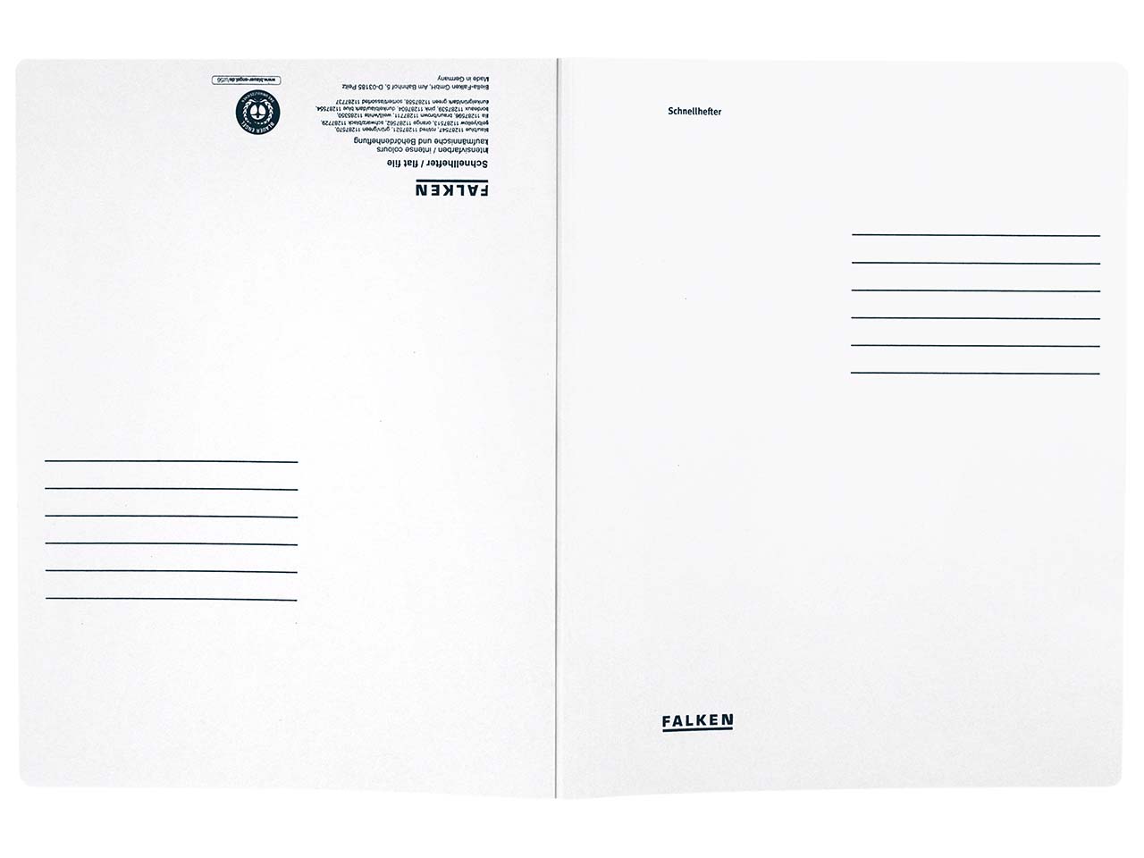 Mit dem klassischen Falken Schnellhefter aus Manila-Recyclingkarton heften Sie gelochtes Schriftgut ordentlich ab. Der stabile Hefter in 250 g/m²-Qualität verfügt über eine Heftzunge, Abdeckleiste aus Metall sowie Liniendruck auf dem Vorder- und Rückendeckel. Die Füllhöhe von ca. 2 cm bietet Platz für bis zu 200 Blatt (80 g/m²). Erhältlich in verschiedenen, intensiven Farbtönen. Im Format DIN A4.