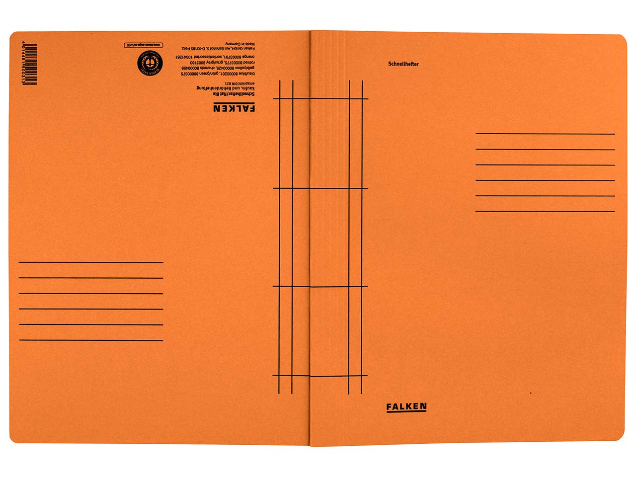 Mit dem klassischen Falken Schnellhefter aus Manila-Recyclingkarton heften Sie gelochtes Schriftgut ordentlich ab. Der stabile Hefter in 250 g/m²-Qualität verfügt über eine Heftzunge, Abdeckleiste aus Metall sowie Liniendruck auf dem Vorder- und Rückendeckel. Die Füllhöhe von ca. 2 cm bietet Platz für bis zu 200 Blatt (80 g/m²). Im Format DIN A4.