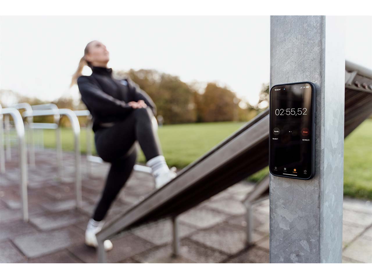 - Praktische Halterung für das Smartphone