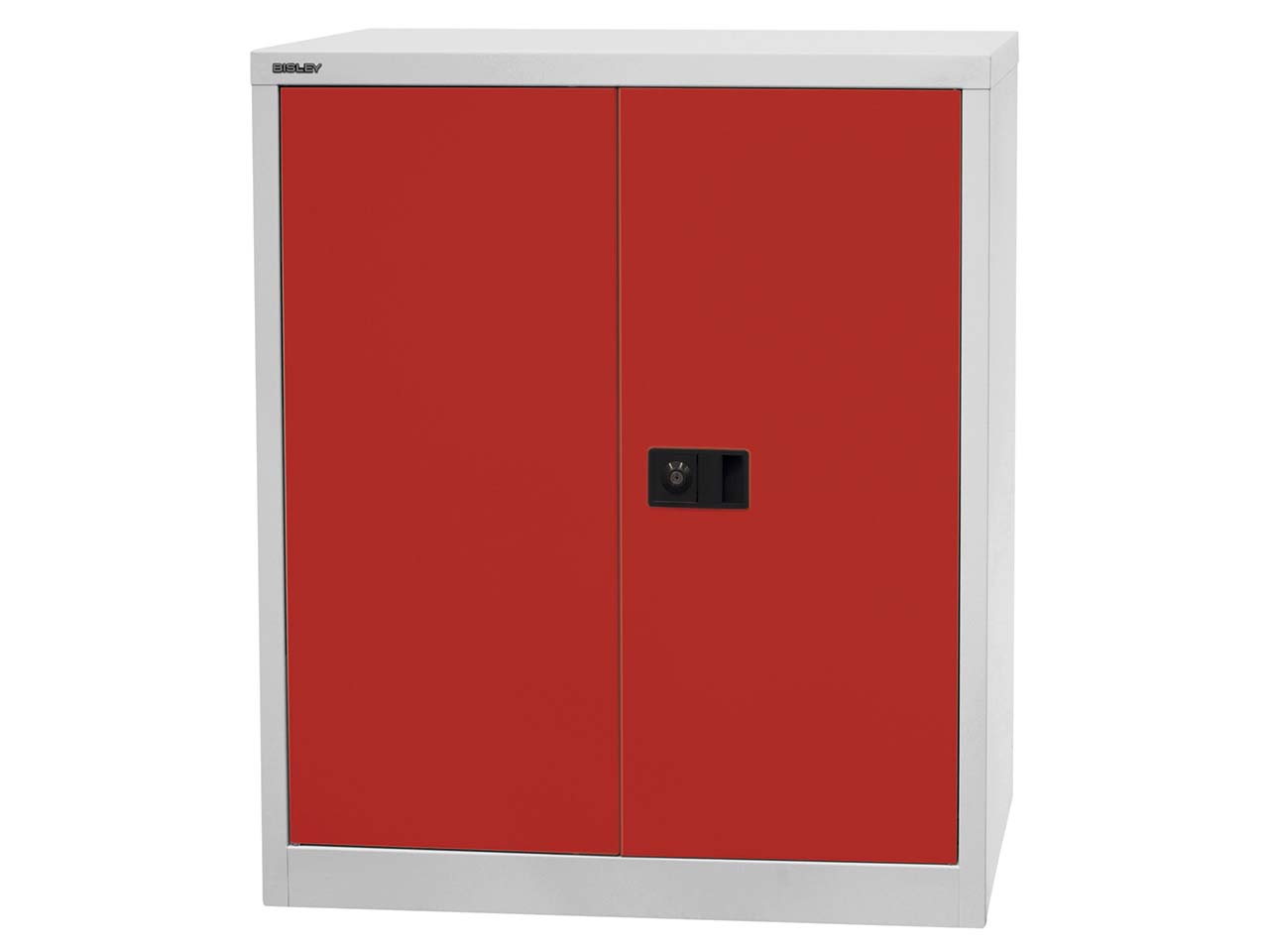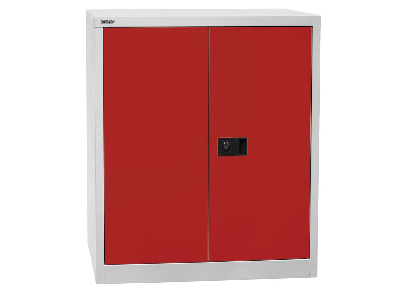 Der BISLEY Flügeltürenschrank "Light" ist zu 100 % aus Stahl gefertigt. Mit geschweißtem, sehr robustem Korpus, Klappgriff mit Schloss und 1 Fachboden für 2 Ordnerhöhen. B 91,4 x T 40 x H 100 cm.