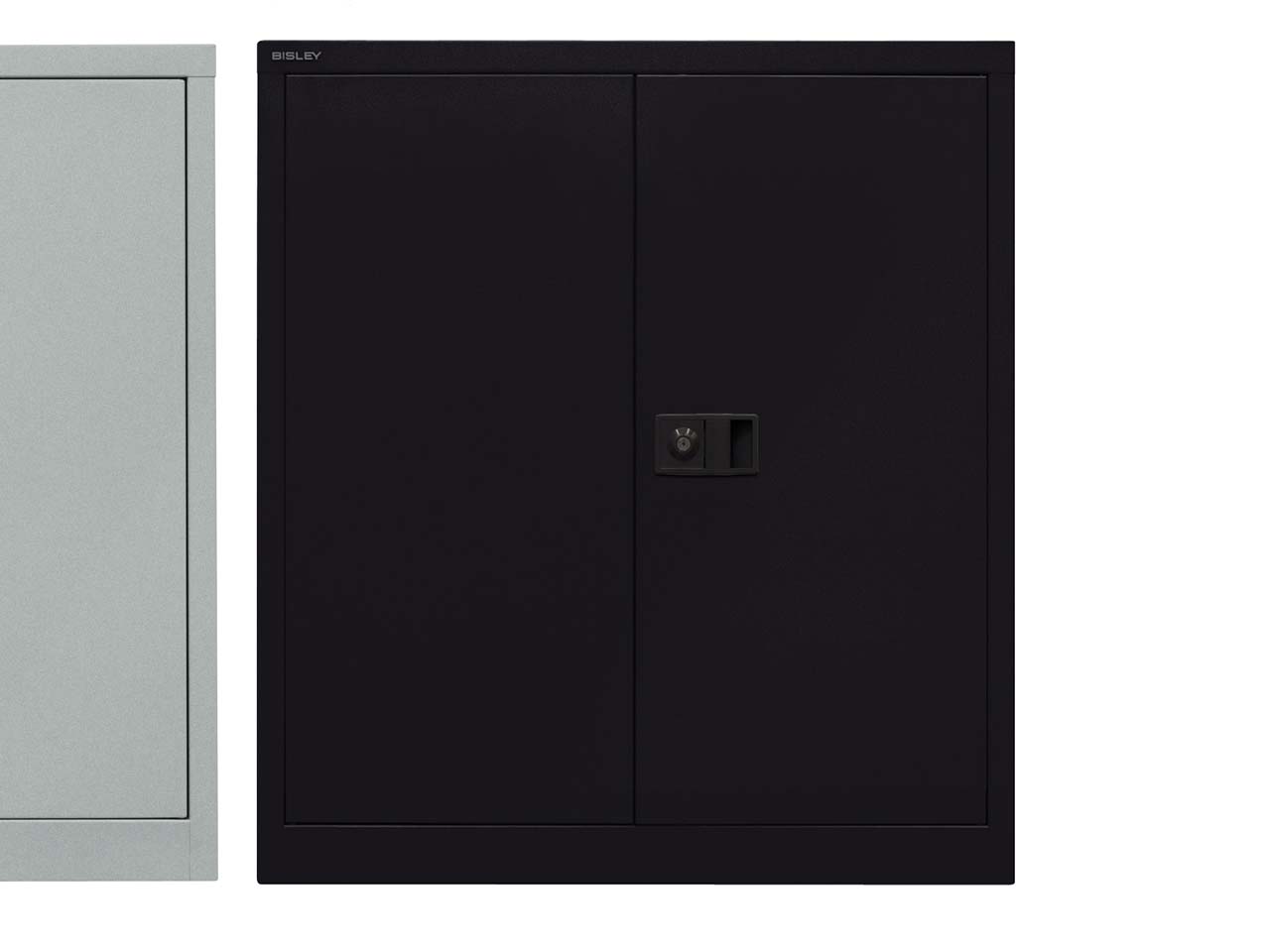 Der BISLEY Flügeltürenschrank "Light" ist zu 100 % aus Stahl gefertigt. Mit geschweißtem, sehr robustem Korpus, Klappgriff mit Schloss und 1 Fachboden für 2 Ordnerhöhen. B 91,4 x T 40 x H 100 cm.