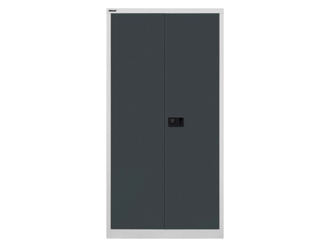 Der BISLEY Flügeltürenschrank "Light" ist zu 100 % aus Stahl gefertigt. Mit geschweißtem, sehr robustem Korpus, Klappgriff mit Schloss und 3 lackierten Fachböden für 4 Ordnerhöhen. B 91,4 x T 40 x H 180,6 cm.