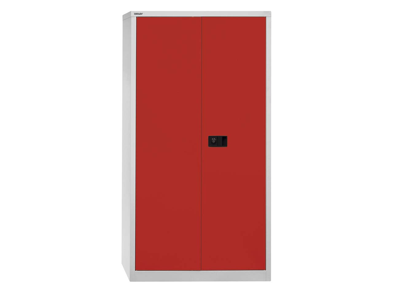 Der BISLEY Flügeltürenschrank "Light" ist zu 100 % aus Stahl gefertigt. Mit geschweißtem, sehr robustem Korpus, Klappgriff mit Schloss und 3 lackierten Fachböden für 4 Ordnerhöhen. B 91,4 x T 40 x H 180,6 cm.