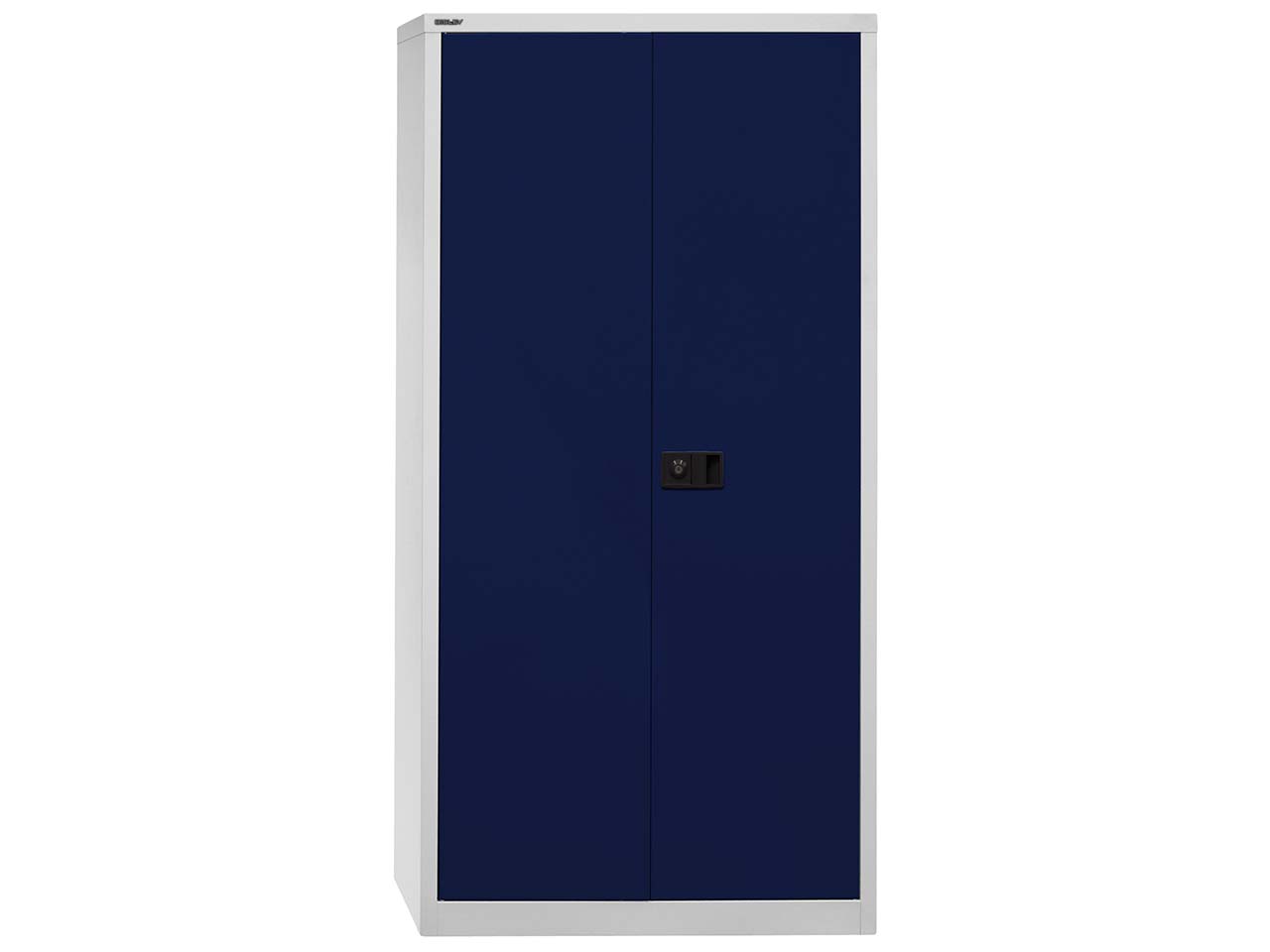 Der BISLEY Flügeltürenschrank "Light" ist zu 100 % aus Stahl gefertigt. Mit geschweißtem, sehr robustem Korpus, Klappgriff mit Schloss und 3 lackierten Fachböden für 4 Ordnerhöhen. B 91,4 x T 40 x H 180,6 cm.