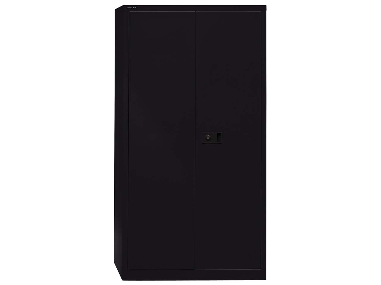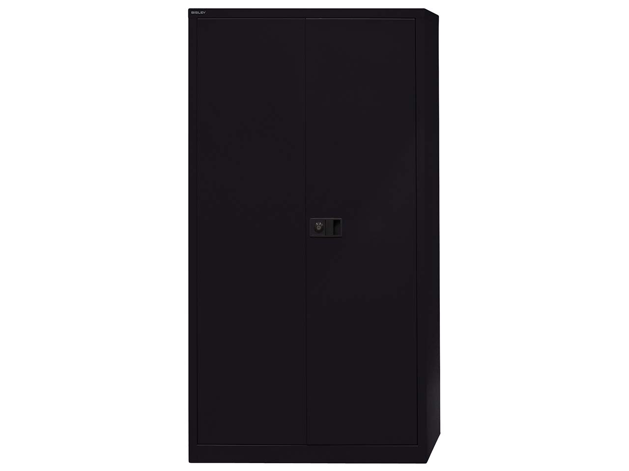 Der BISLEY Flügeltürenschrank "Light" ist zu 100 % aus Stahl gefertigt. Mit geschweißtem, sehr robustem Korpus, Klappgriff mit Schloss und 3 lackierten Fachböden für 4 Ordnerhöhen. B 91,4 x T 40 x H 180,6 cm.