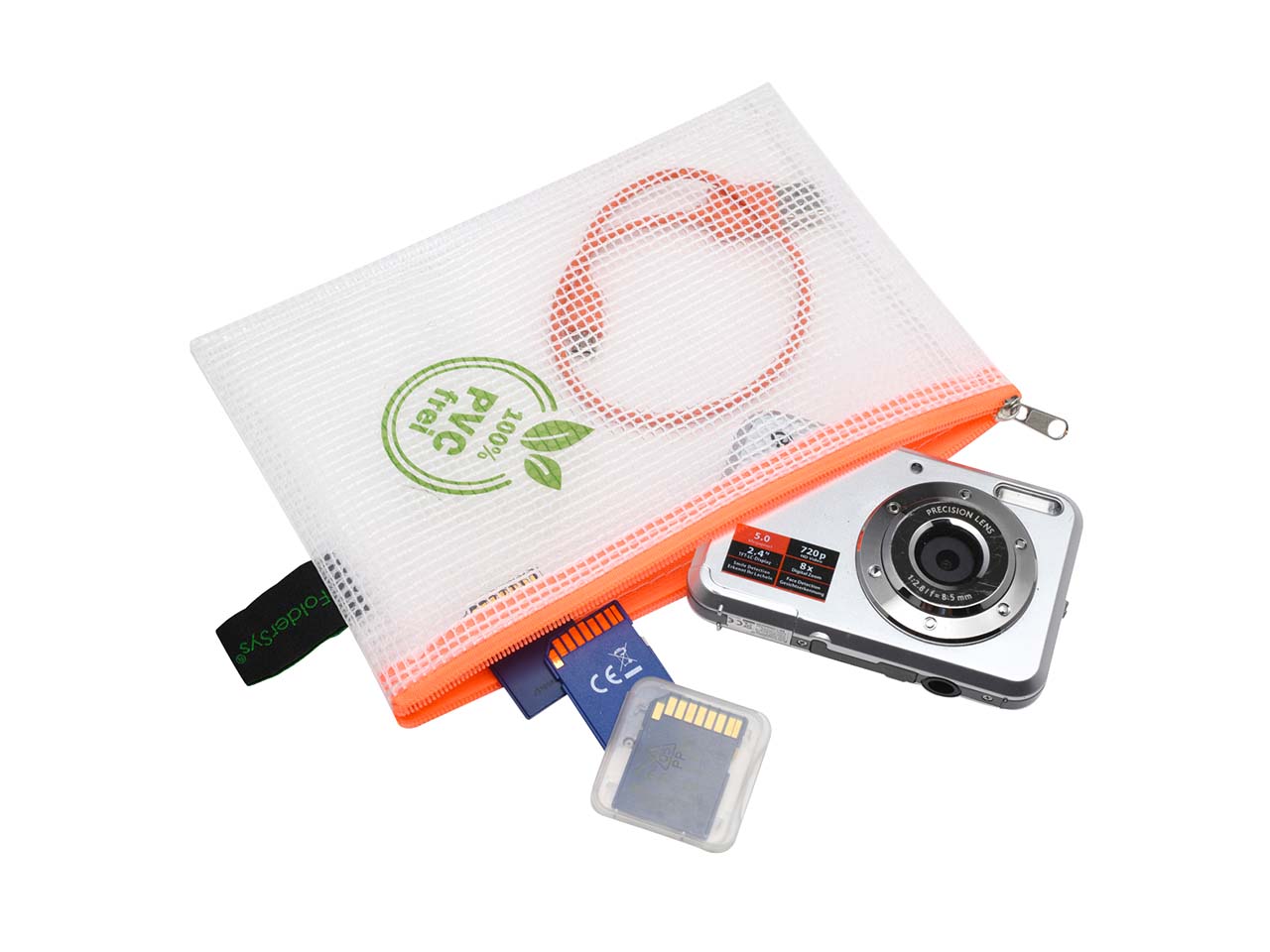 Der PVC-freie FolderSys Reißverschlussbeutel im Format A6 ist aus chlor- und weichmacherfreiem Kunststoff gefertigt. Der Textil-Reißverschluss verfügt über einen Metallgleiter. Der Beutel aus widerstandsfähiger, geschmeidiger Folie eignet sich optimal zur Aufbewahrung und zum Sammeln von Kleinteilen. 183 x 128 mm.