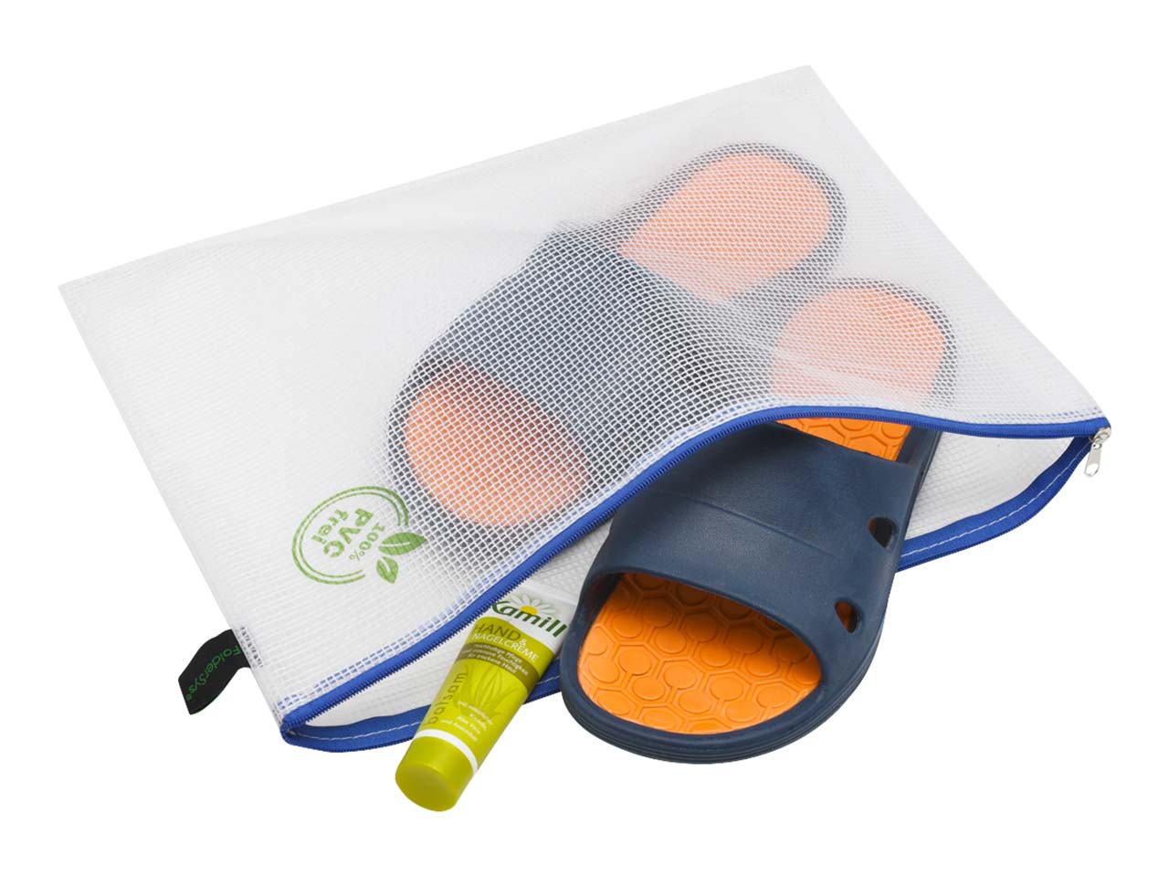 Der Reißverschlussbeutel ist PVC-, chlor- und weichmacherfrei.