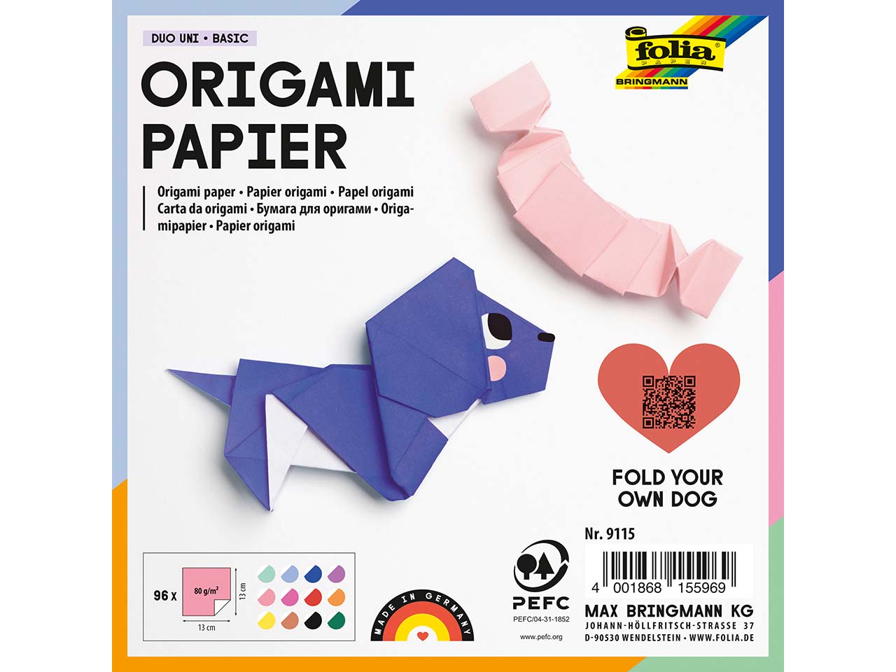 Origami-Falttechnik übt eine ganz spezielle Faszination aus! Um die Figuren und Formen selber zu machen, sind diese Faltblätter von folia ideal geeignet. Das Origamipapier in PEFC-zertifizierter Qualität hat eine Grammatur von 80 g/m² und ist damit stabil genug für verschiedene Bastelarbeiten. Die Origami-Faltblätter sind ein kreativer Spaß für Groß und Klein.