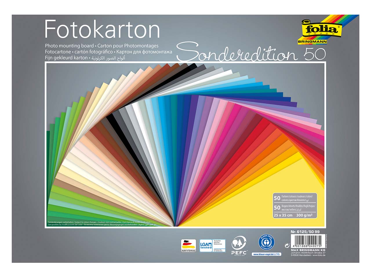 folia Fotokarton, 300 g/m², sortierte Farben, 50 Bogen