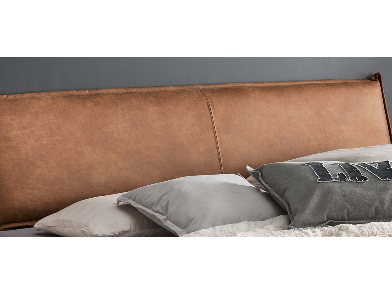 Forestales Massivholzbett "Cleveland" mit Schubladen und Stoffkopfteil