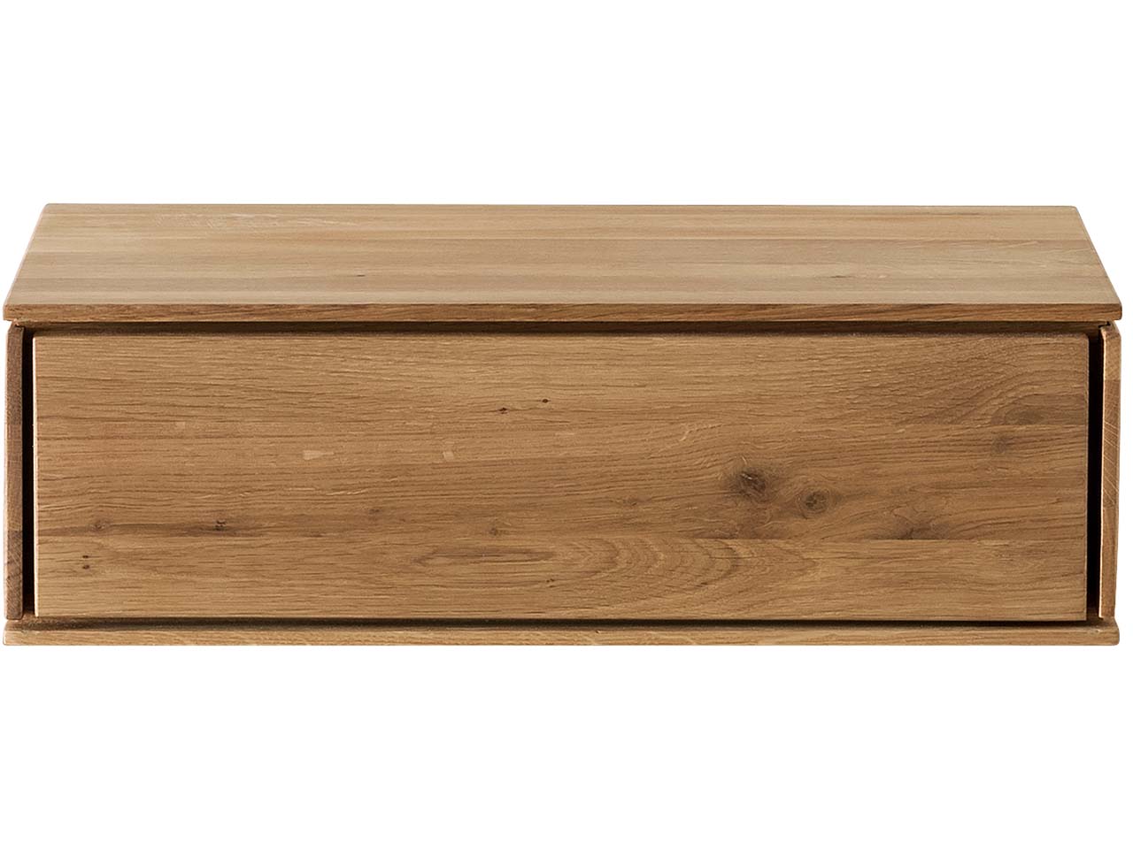 Das filigrane, hochwertige Design zeichnet diese Nachtkommode aus. Sie ist aus massivem Holz gefertigt, das mit seiner immer einzigartigen Maserung glänzt und durch die Behandlung mit Öl auf Pflanzenbasis auch offenporig bleibt. Die Konsole wird nur eingehängt – einfacher geht es gar nicht! Das gilt auch für das Öffnen der Schublade. Diese ist mit Tip-On Beschlag versehen, sodass sie per Fingerdruck öffnet. Der Nachttisch ist ideal für die Aufbewahrung von Leuchte, Buch, Smartphone und mehr. B 45 x T 37 x H 14 cm.