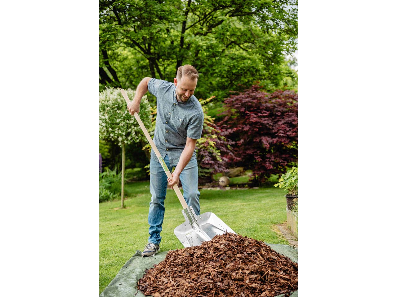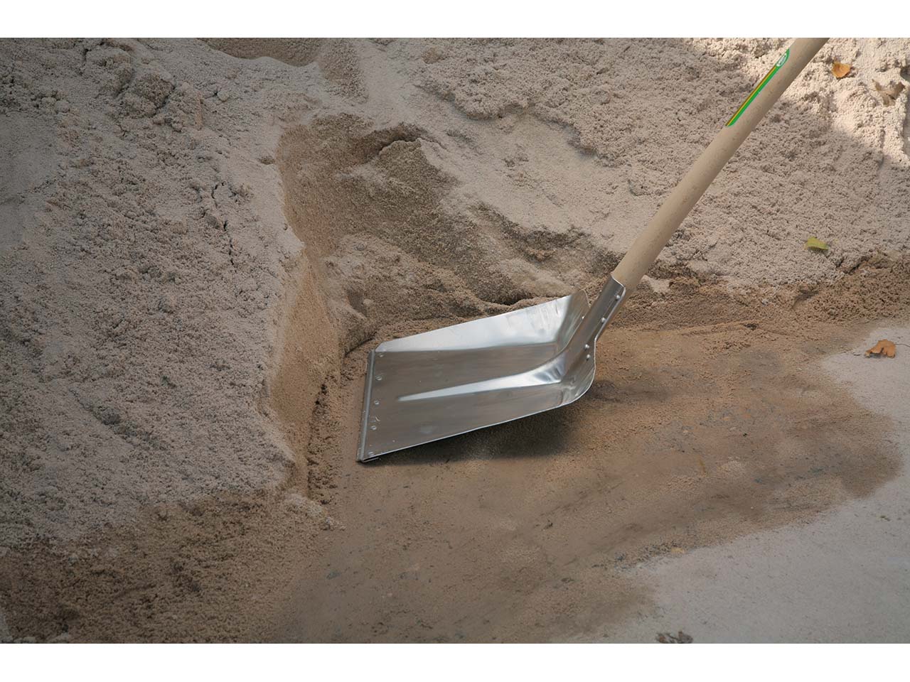 Die Hallenser Flachrandschaufel in Profiqualität besteht aus 2,5 mm starkem, gehärtetem Aluminium und ist mit einer robusten Stahlschutzkante versehen. Der FSC-zertifizierte Langstiel sorgt für komfortables Arbeiten. Die Schaufel ist zum Aufnehmen und Bewegen von Schüttgütern wie Sand, Kies oder Getreide auf Baustellen und in der Landwirtschaft. B 38 x L 158 x H 19,5 cm.