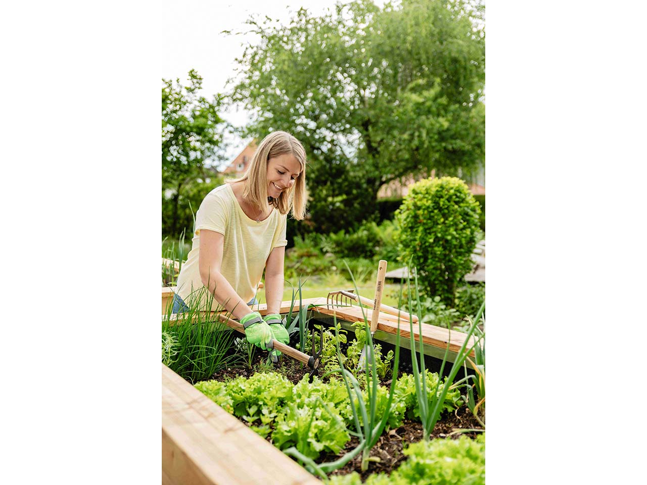 Hochbeete sind perfekt für das rückenschonende Gärtnern – aber ohne das passende Werkzeug geht es nicht! Das Kleinhäckchen mit Breitblatt und 2 Zinken ist ein vielseitiger Helfer zur Pflege von Boden und Pflanzen. Der Kurzstiel aus FSC-zertifiziertem Holz liegt optimal in der Hand. Dank Aufhängebohrung ist das Kleinhäckchen einfach und platzsparend aufbewahrt. B 45 x L 27 x H 65 cm.