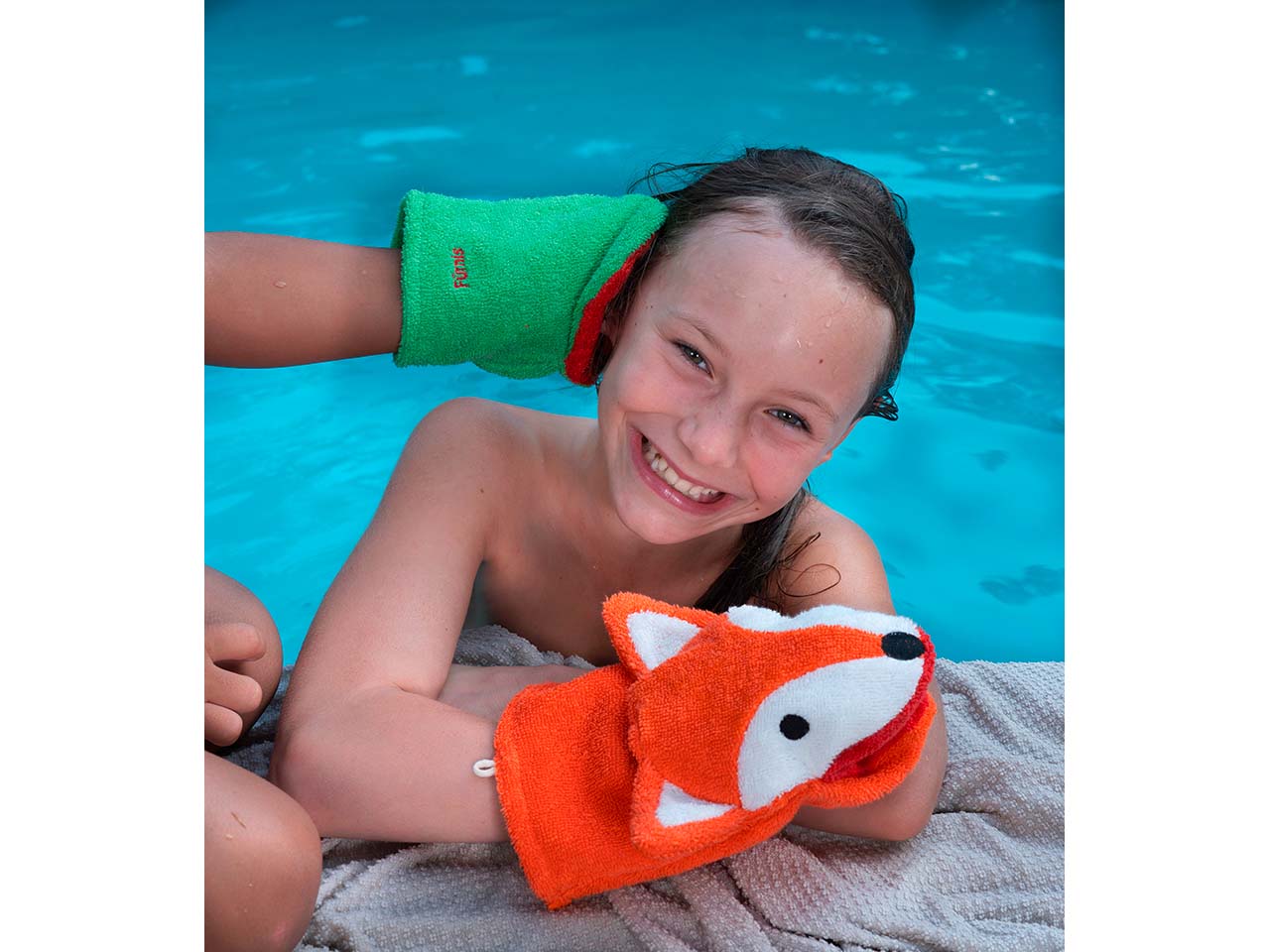 Mit diesem niedlichen Waschlappen wird Baden und Waschen zum Spaß! Durch den großzügigen Schnitt können Kinder ihre Hand problemlos in den Waschhandschuh stecken und sich waschen – oder damit spielen. Denn der Lappen hat ein Klappmaul, sodass Kinder oder Erwachsene die Tiere zum Leben erwecken können. Der Waschhandschuh für Kinder besteht aus weicher Bio-Baumwolle und wird in der EU handgenäht. Muss der Waschlappen selbst mal gewaschen werden, kann er eine Runde in der Waschmaschine drehen. Erhältlich in verschiedenen Designs.