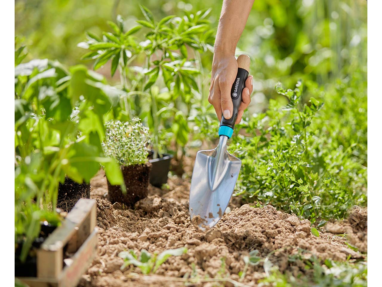 Hochwertige Qualität und volle Funktionalität: Die Blumenkelle liegt dank ergonomisch geformtem Griff angenehm in der Hand und erleichtert das An- und Umpflanzen in Beeten, Pflanzkübeln und Blumenkästen. Sie besteht aus widerstandsfähigem Stahl, von dem mehr als 25 % recycelt sind. Für die Kunststoffkomponenten am Gartengerät wird sogar zu über 85 % Recyclingmaterial verwendet. Das hier eingesetzte Holz stammt aus vorbildlich bewirtschafteten Wäldern. Die langlebige Pflanzenschaufel eignet sich für jede Form von Gartenarbeit.